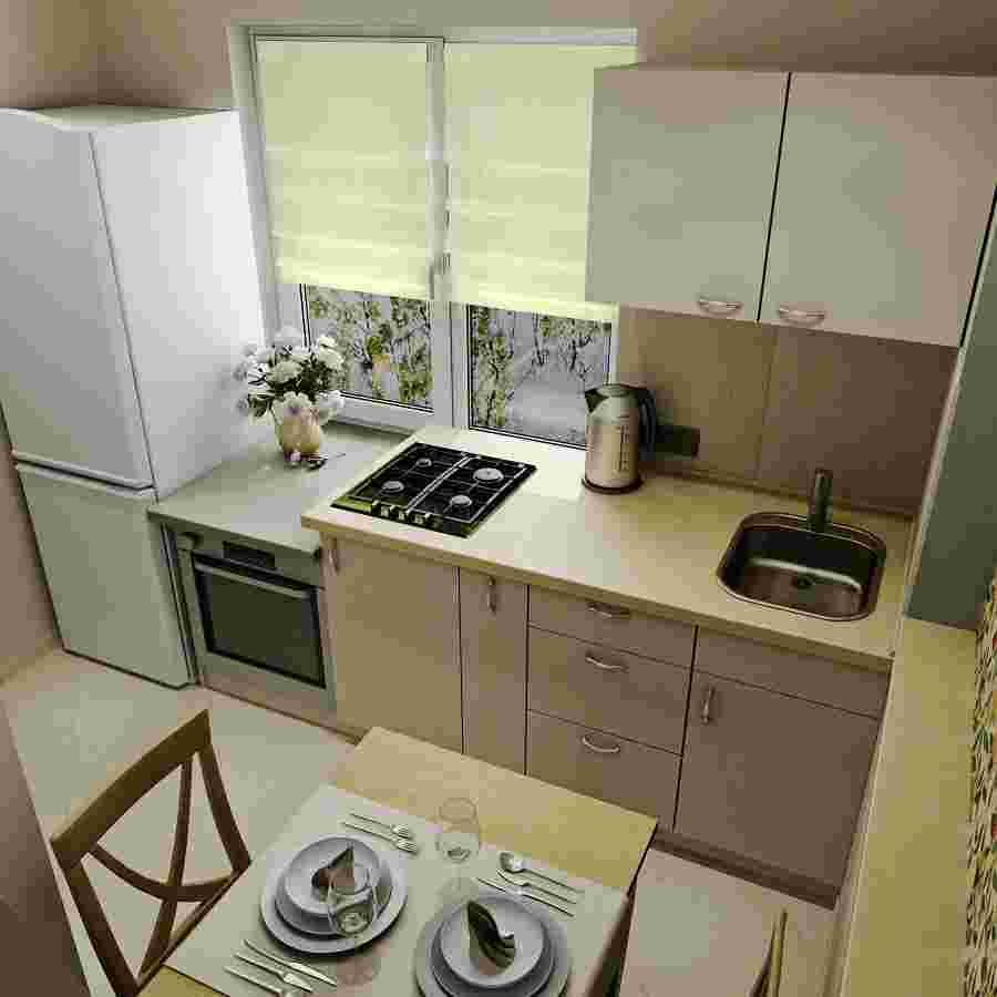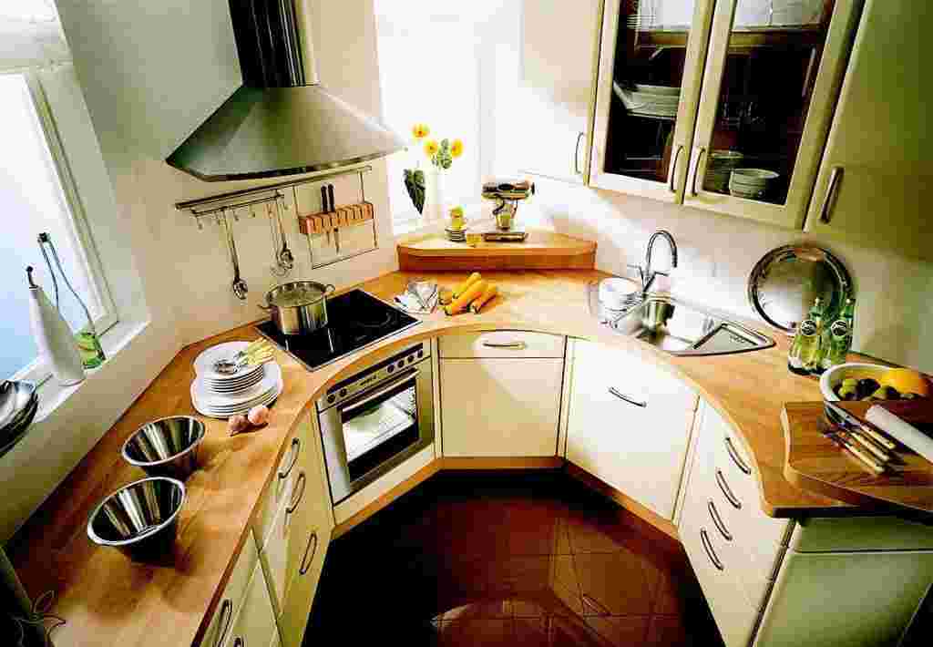 В малогабаритной кухне достаточно часто используется вариант планировки в виде буквы Г. Главная его особенность заключается в размещении около смежных стен: