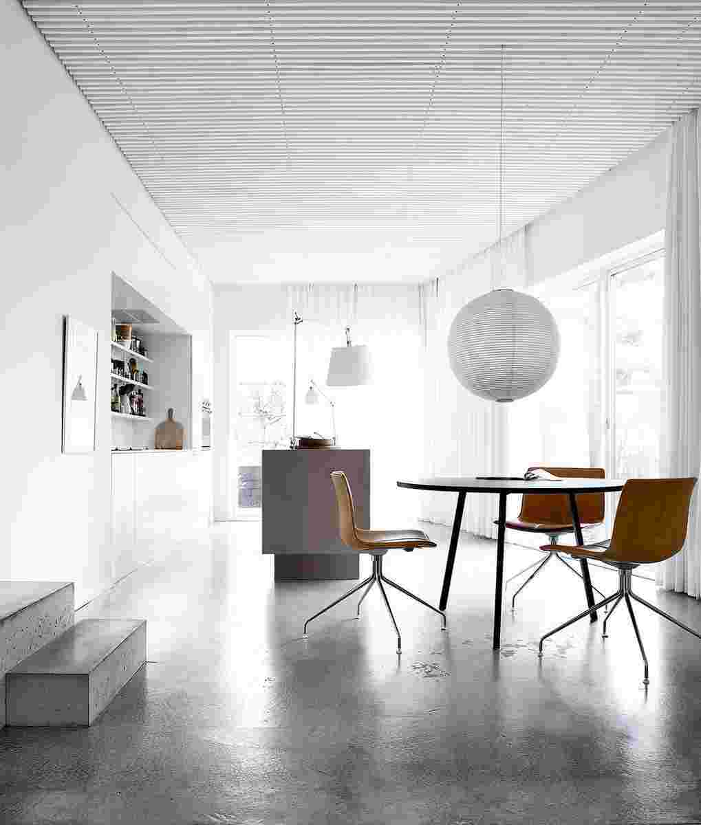 Еще совсем недавно этот материал старательно прятался от взглядов. Сегодня отношение к практичному покрытию начинает меняться. Оно прекрасно подойдет для создания чердачного лофта, может использоваться в минимализме и хай-теке.