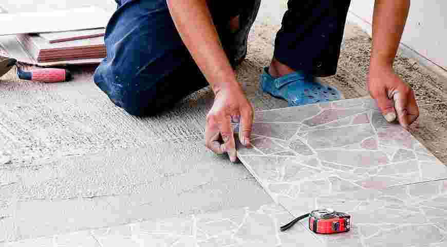 Керамическая плитка на полу у ванной комнате