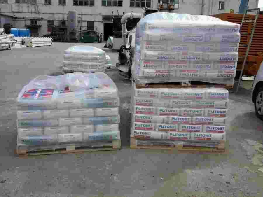 -Цементный клей для плитки. Его используют не только для керамики, но и кладки искусственного камня. В работе на фасадах смесь подходит для крепления блоков полистирола или минеральных плит.