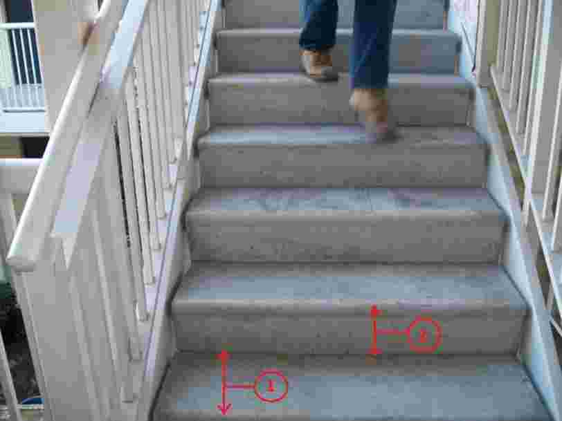Опасными принято считать необычные и короткие лестничные марши, так как человек может не догадываться об их особенностях и получить травму. Если возникает необходимость в установке таких лестниц, то рекомендуется выделить эту область, например с помощью краски контрастных цветов между поручнем и стеной, изменения конфигурации потолка над лестницей и т. п.