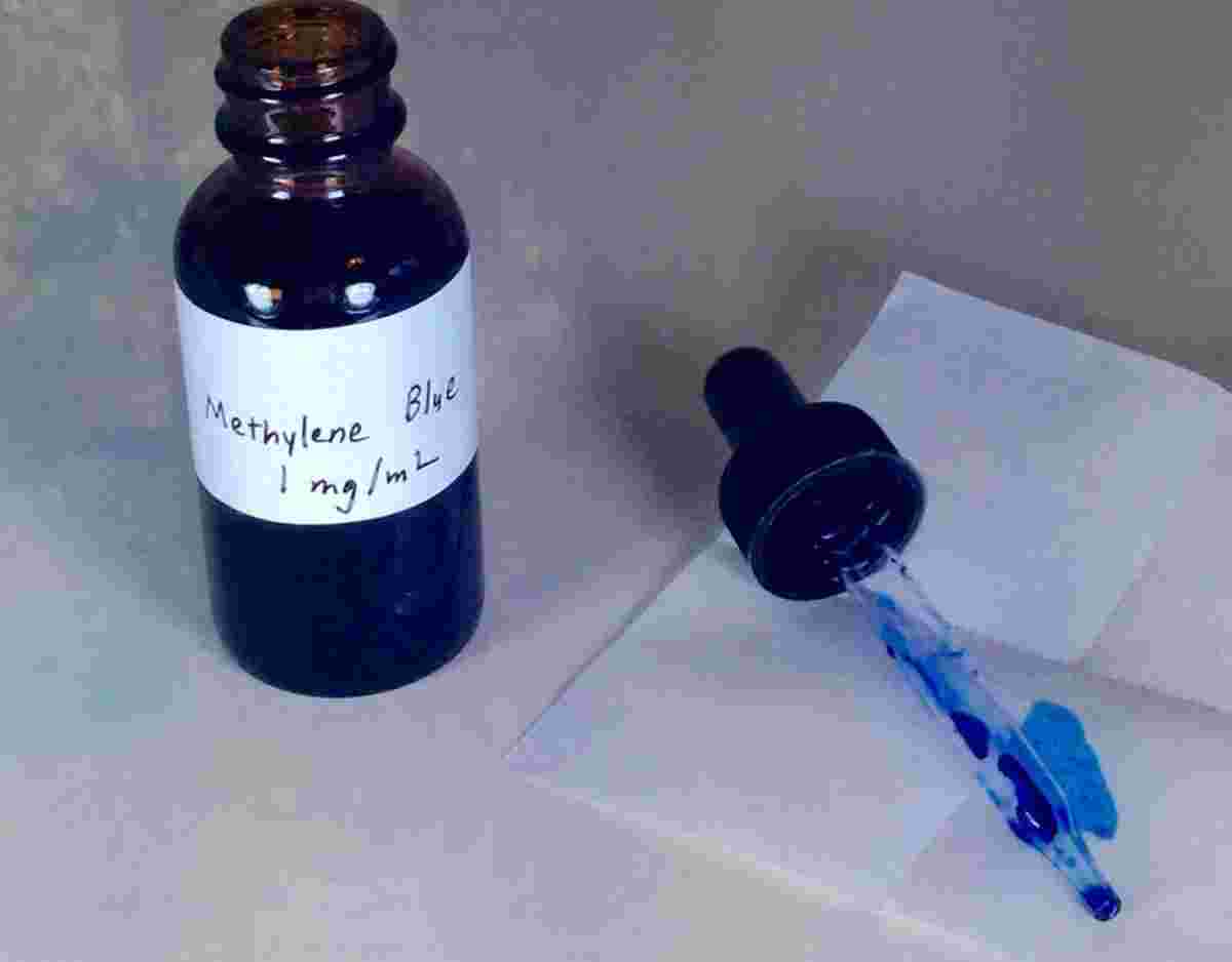 - Добавить несколько капель синьки в чистую воду (1 л);