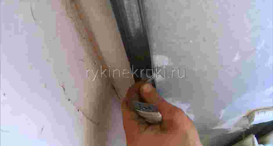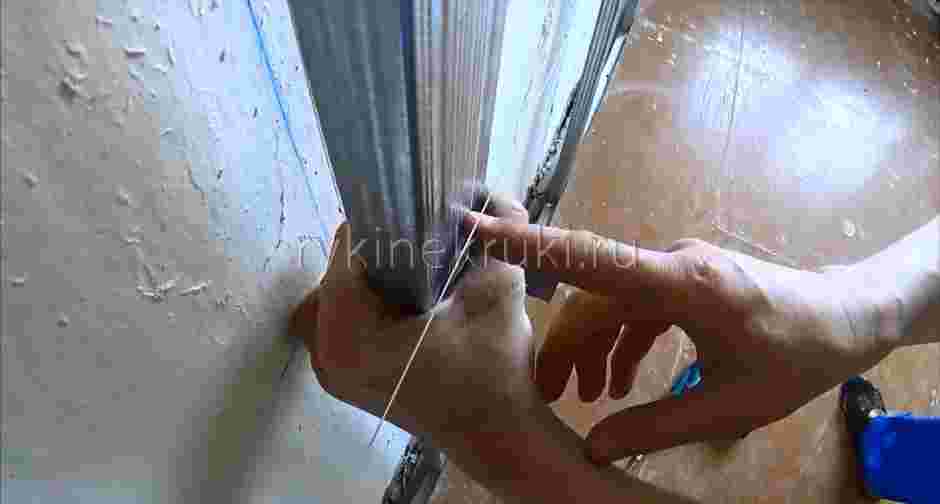 - К раме прикладывается угольник и отмеряется нужное расстояние, добавляя 5 сантиметров с другой стороны проема. Можно ко «дну» подоконника сразу установить ПН, с шагом вертикальных стоек до 60 сантиметров.