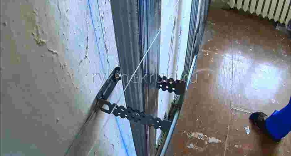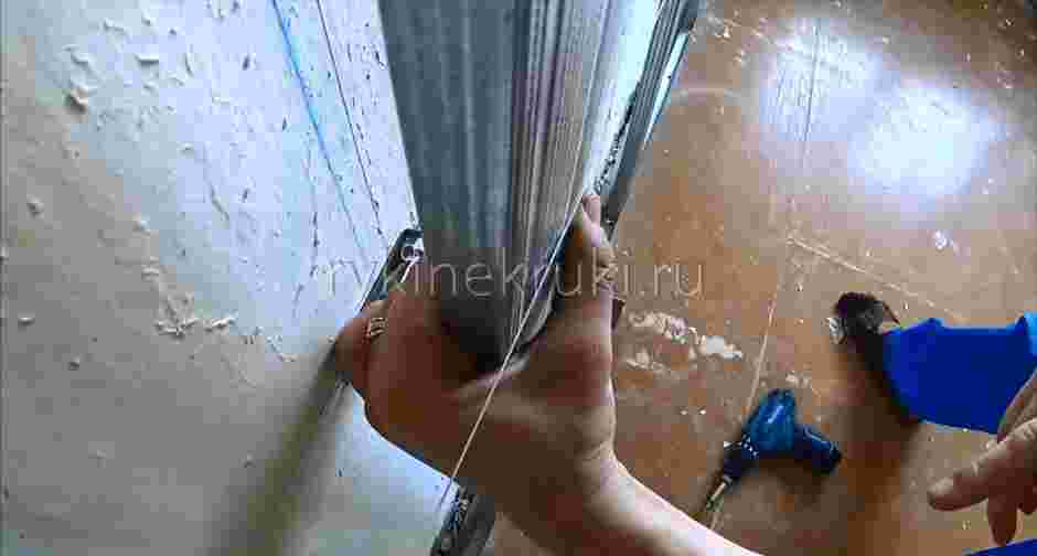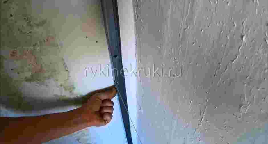 - В процессе работы необходимо контролировать совпадение канавки профиля и отметок на стенах.