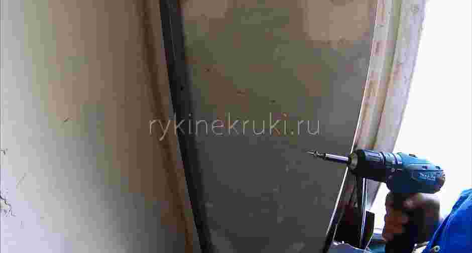 - По линиям, нанесенным заранее на стены, монтируется ПНП через имеющиеся рабочие отверстия на профиле, при их отсутствии они сверлятся с шагом полметра перфоратором или электродрелью, что зависит от основания стены, на которую каркас крепится.