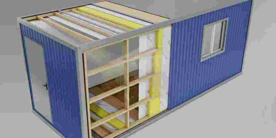Внутренняя обшивка и утепление. Для обустройства стен могут использоваться вагонка из дерева и пластика, гипсокартон, оргалит, МДФ и т. д. Наиболее распространенными утеплителями являются минвата и синтетические материалы. В зимних исполнениях бытовок утепляются не только стены, но и пол, потолок, дверное полотно.