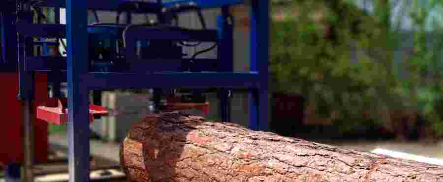 Чтобы срезать часть бревна и получить доску, колеса с полотном опускают на нужную высоту и начинают двигать раму, пока механизм не срежет нужное количество дерева.