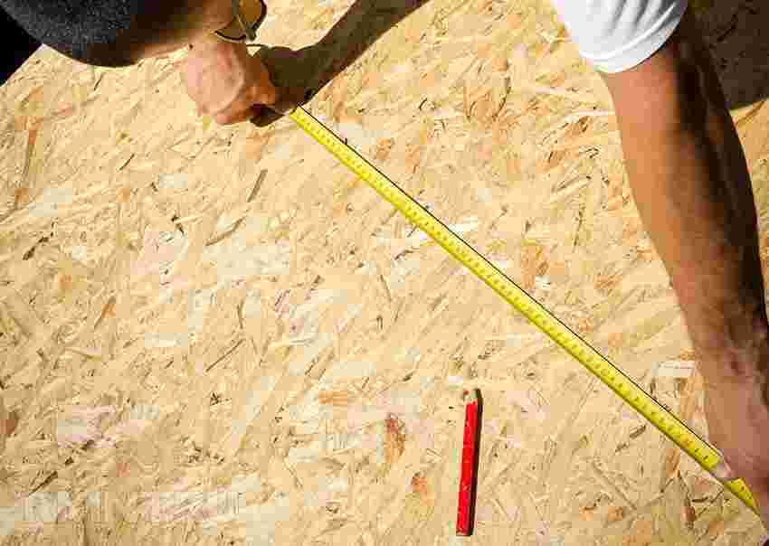 Ориентировано-стружечная плита — современный материал, применяющийся в строительстве и отделке. В ее состав входит порядка 90% древесины в виде стружек и щепок, связанных между собой водостойкими синтетическими смолами. Каждая плита образована тремя или четырьмя слоями спрессованной при воздействии высоких температур и давления стружки, длина которой достигает 15 см. Особенность материала в том, что направление стружки в каждом слое разное, это позволяет плитам приобрести особую прочность.