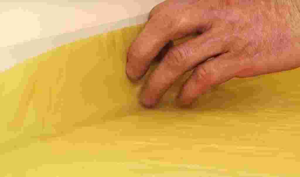 Правилом вытягивается клей вдоль поверхности так, чтобы инструмент был под небольшим наклоном. Правильно подготовленный клей ложится ровно, заполняет все неровности, схватывает шероховатости и делает поверхность идеально гладкой. Если раствор правильно залит, то по истечении 2–3 дней после его полного высыхания не будет заметно никаких следов.