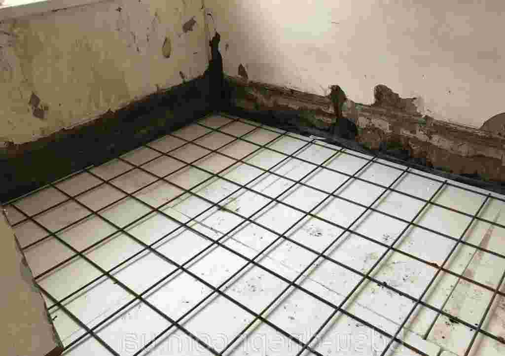 - На поверхности пола располагают армирующую сетку так, чтобы она оказалась в толще стяжки.