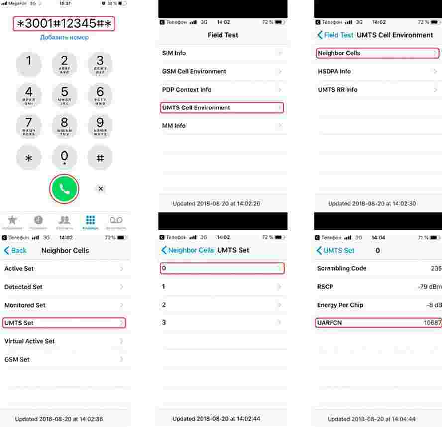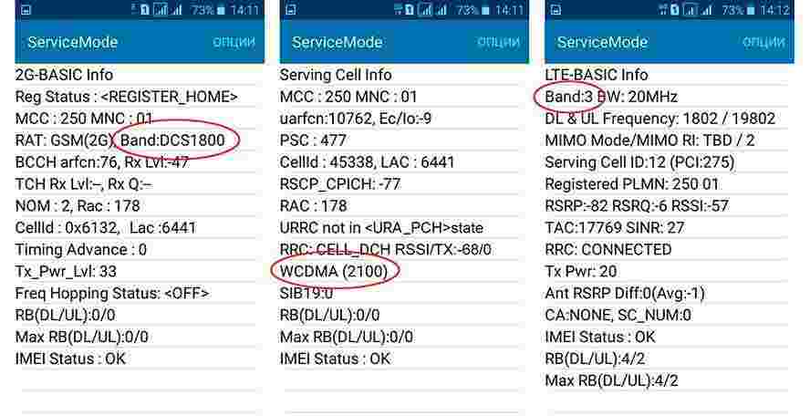 Например, если есть надпись Band3, значит, устройство переключилось на частоту 1800 мегагерц. По наличию или отсутствию значка 4G в верхней части экрана, а также данным uarfcn, можно судить о диапазоне.