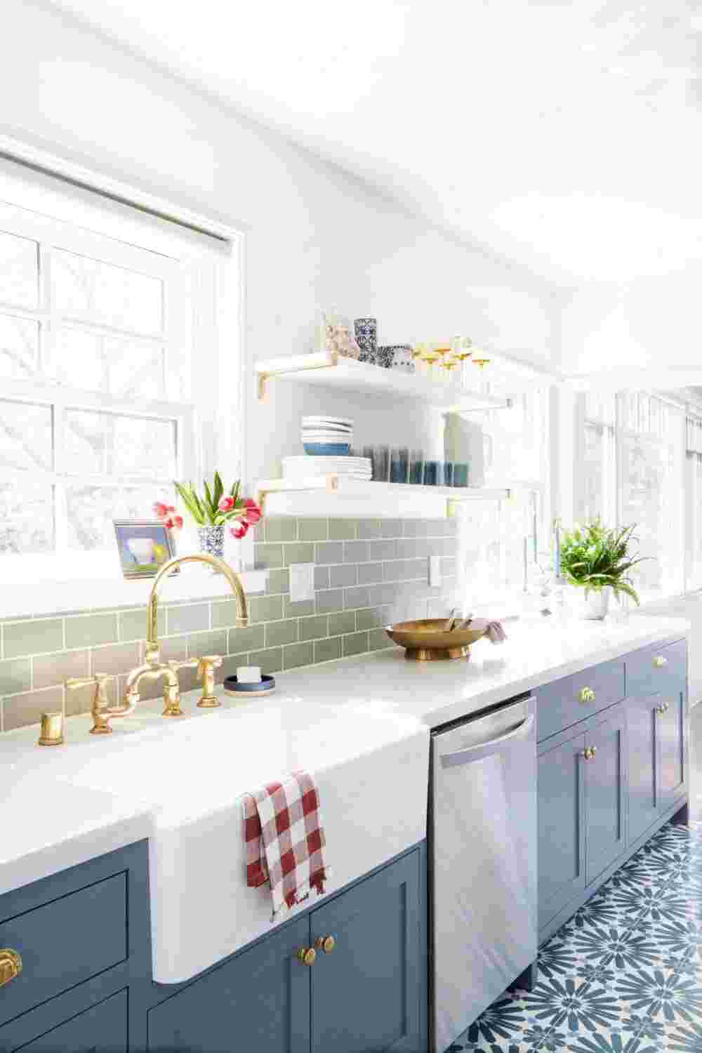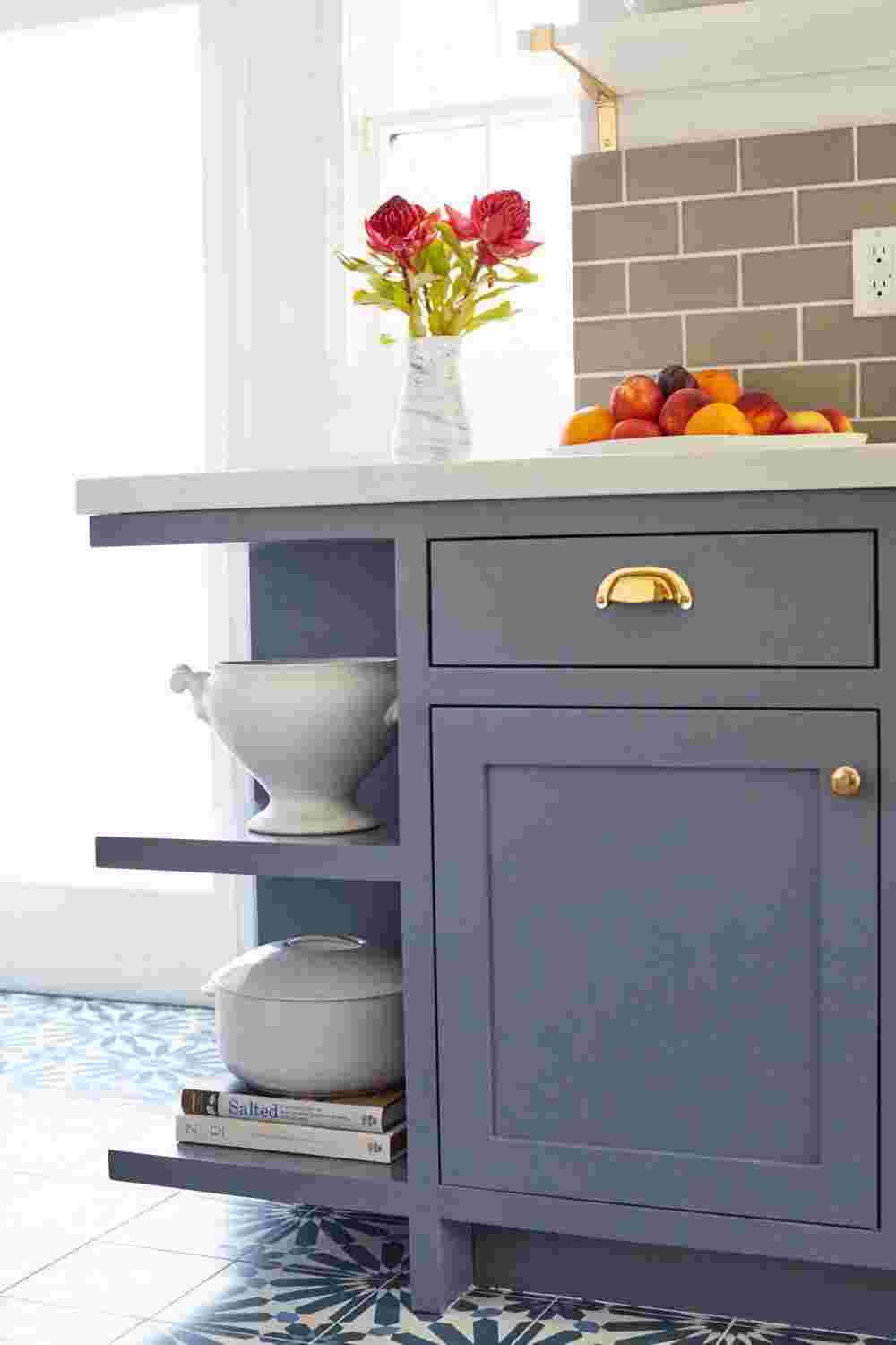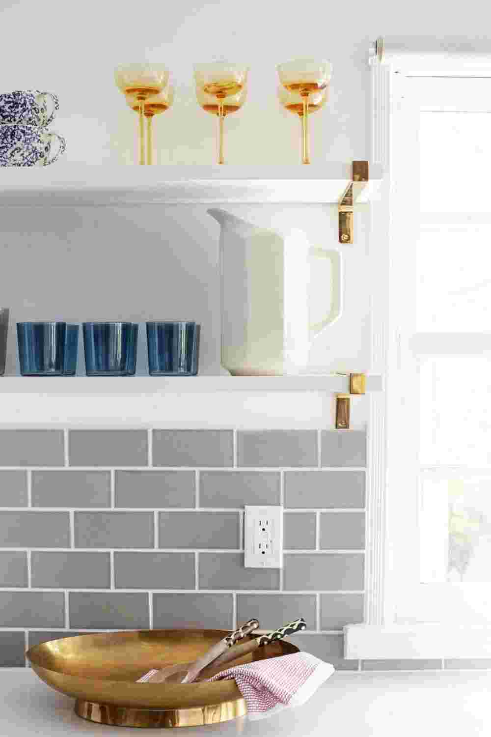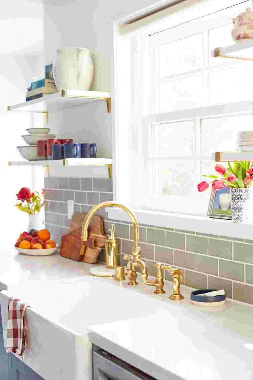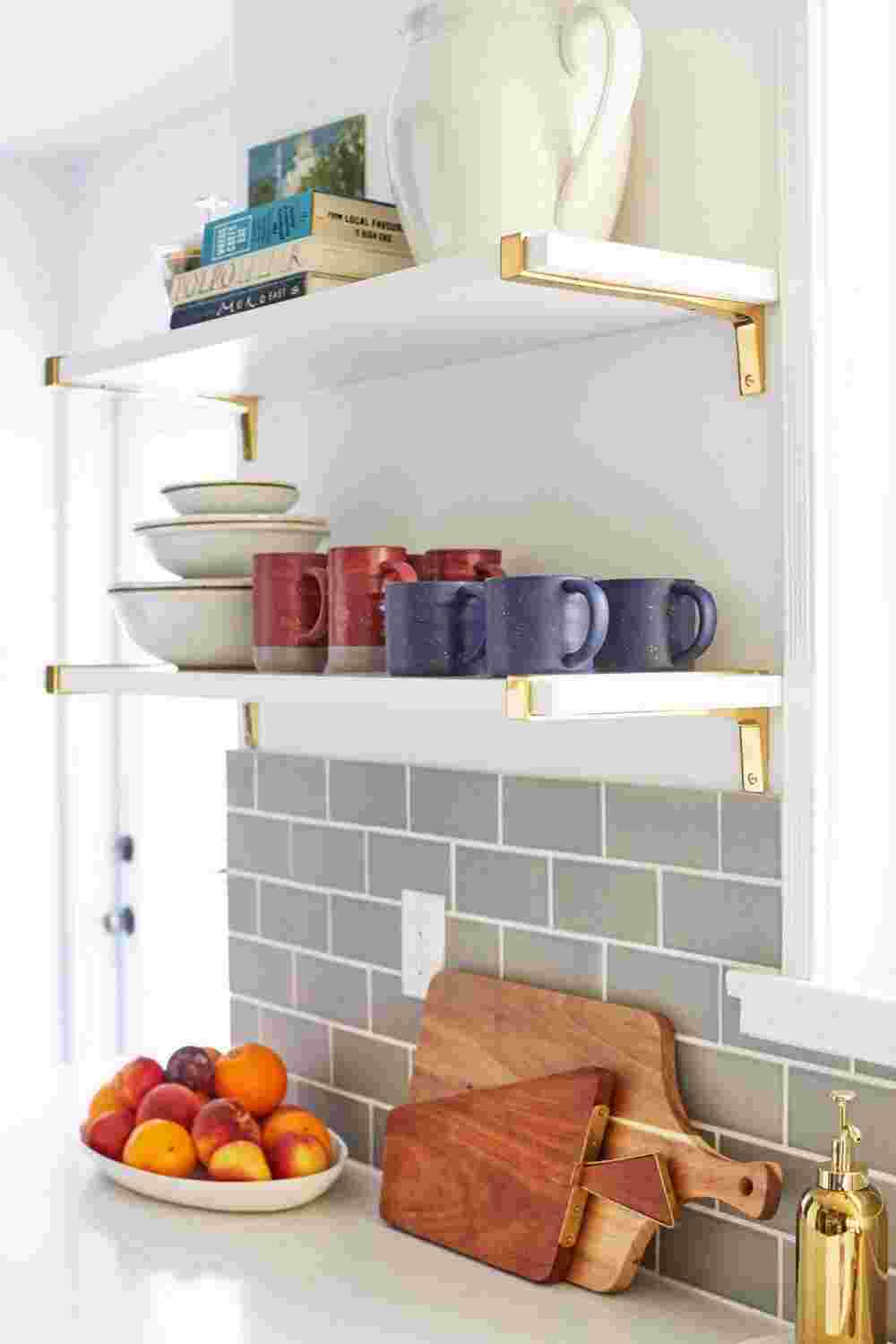 Если у вас есть слишком много предметов, загромождающих столешницы, рассмотрите умные решения, такие как настенные магнитные ножевые ленты, рельсы для подвешивания посуды, кастрюль, кружек, банок для специй и ящиков для столовых приборов. Также подумайте о том, что вам нужно иметь под рукой каждый день, например, разделочные доски, деревянные ложки, жидкость для мытья посуды, и что можно хранить до тех пор, пока это необходимо.