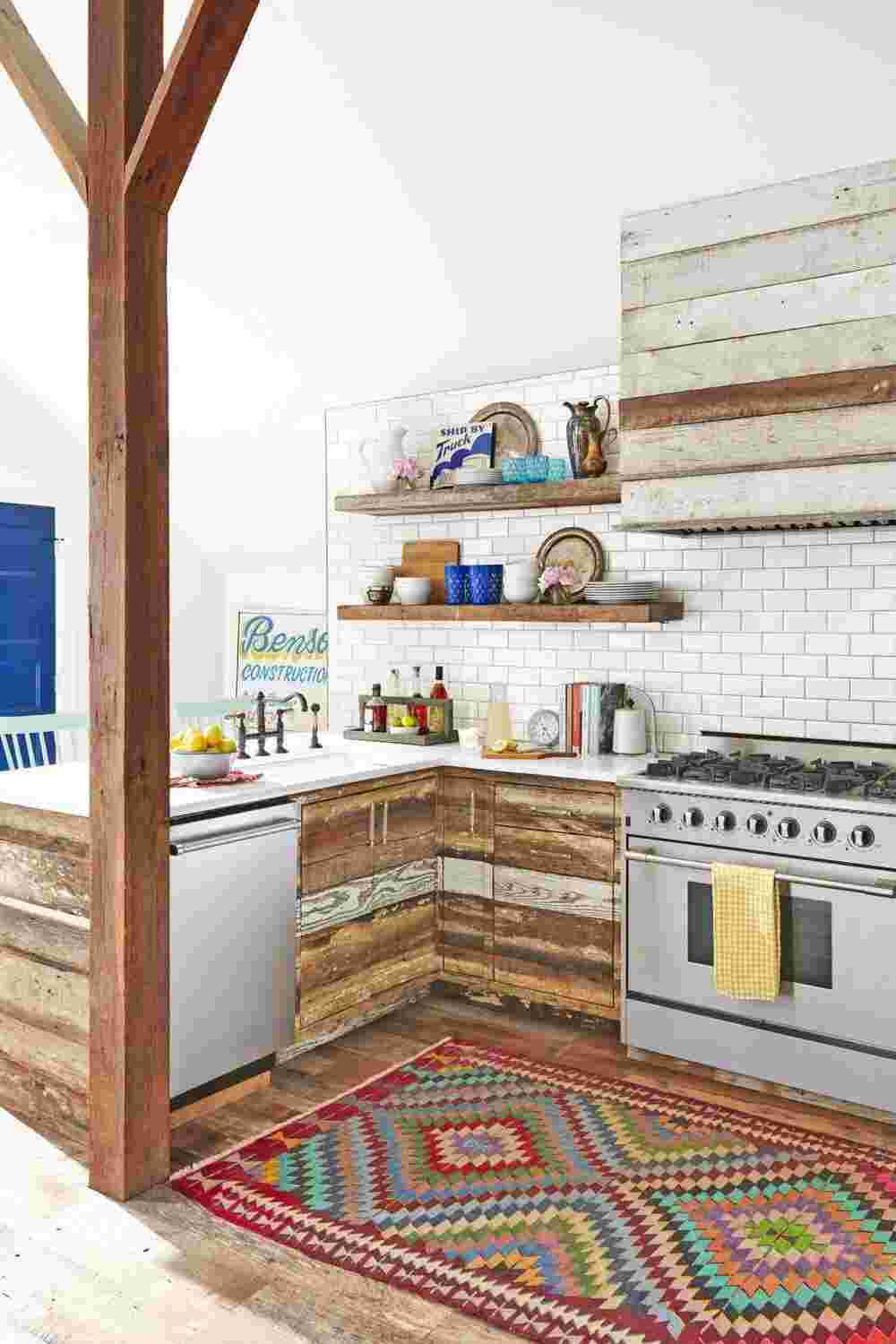 Материалы и текстуры также важны. Подумайте о необработанной древесине для придания естественного вида. Использование дерева в виде кухонного гарнитура и напольных покрытий создает успокаивающую атмосферу.