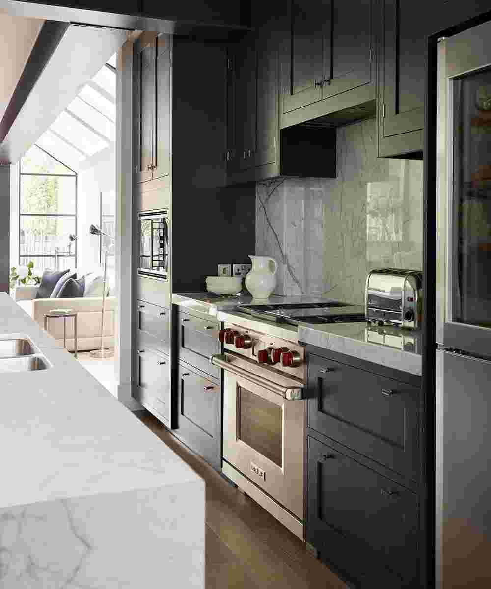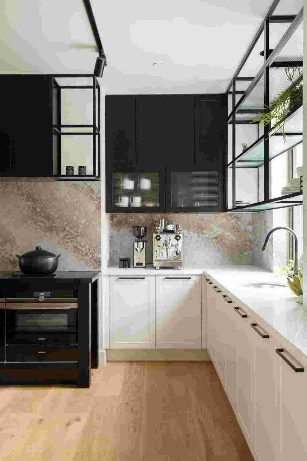 Также важно дополнить кухню правильной организацией хранения, которая кажется больше, чем есть, используя гармоничные цвета и оттенки