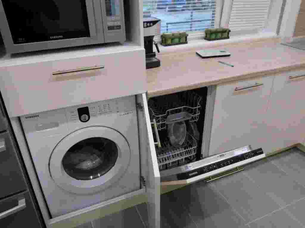 Сэкономить место в нижнем ряду помогут узкие посудомоечные машины и духовки. Сами шкафы должны быть оборудованы соответствующими механизмами, обеспечивающими быстрый и свободный доступ к нужным устройствам.
