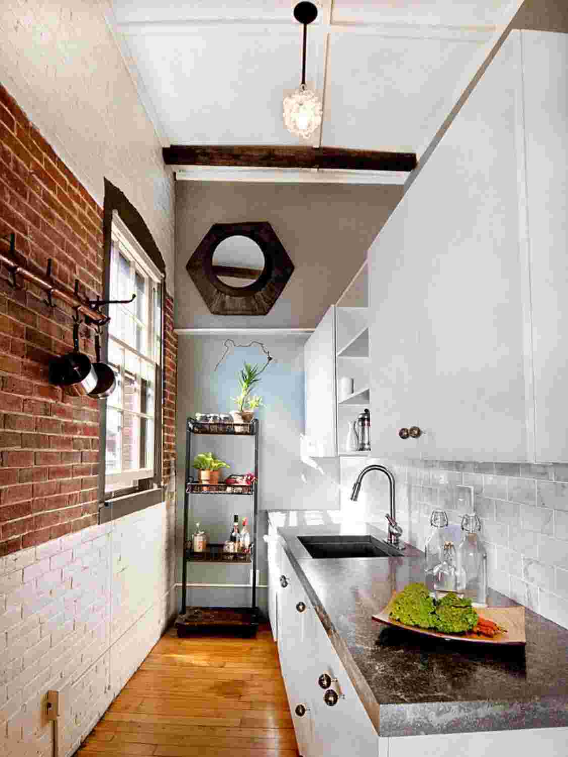 Вы можете использовать пространство на столешнице более продуктивно. Большинство из вас не все равно не могут добраться до верхних шкафов, таким образом, удаление их стало популярным в таких небольших кухнях. Вы фокусируетесь на простоте, что означает современные, чистые и спокойные линии.