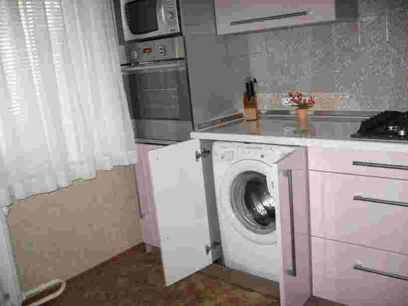 А также для очень маленькой кухни идеально подойдет встроенная мебель, помогающая максимально экономить пространство.