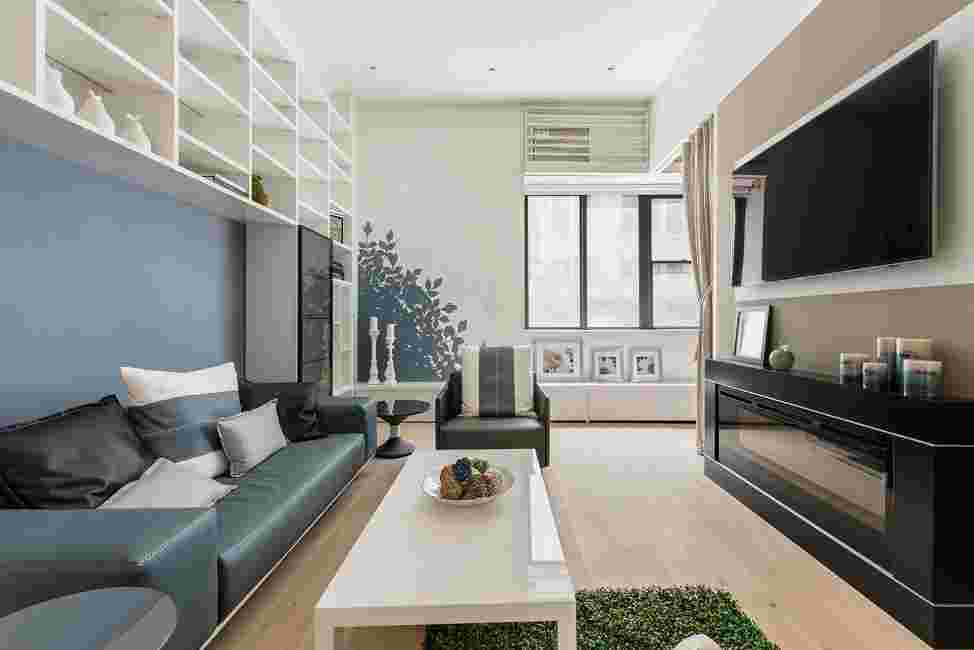 Если же Вы планируете оформление небольшой студии в стиле модерн, обратите внимание на технику ненавязчивого зонирования. Для этого могут использоваться разные напольные покрытия в отдельных зонах или легкие, ажурные перегородки
