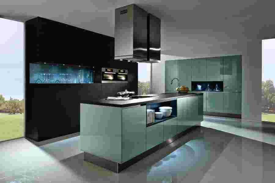 Наличие множества мелких деталей, различных сувениров и аксессуаров категорически неприемлем для данного стиля. Вся необходимая кухонная техника аккуратно монтируется в мебель и рабочие поверхности, а кухонная утварь прячется за матовым стеклом элегантных шкафов и тумб. В таком помещении не только удобно готовить, но и приятно расслабиться и отдохнуть за чашкой кофе, и вы сможете гордо с4казать что данный дизайн кухни разрабатывали сами.