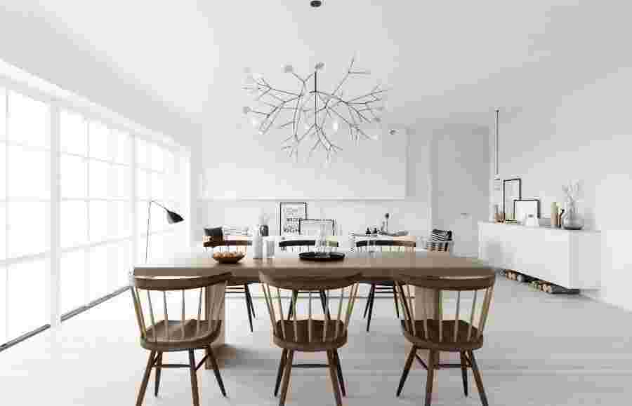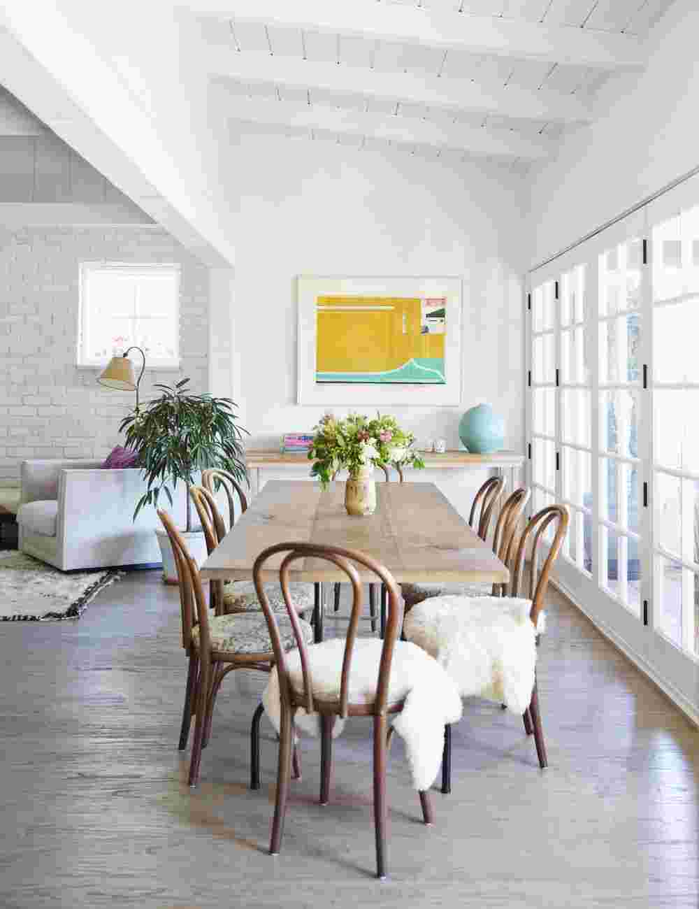 - много солнечного света, окна без занавесей или со шторами, образующими только прямые линии.