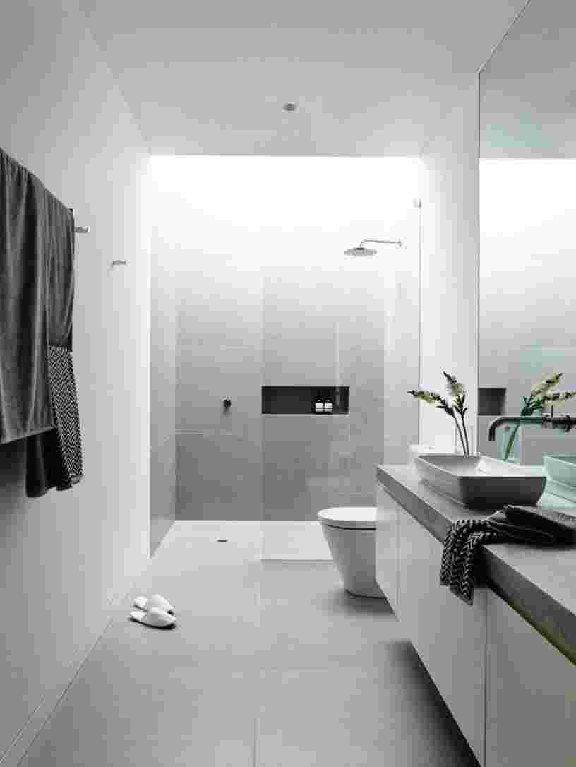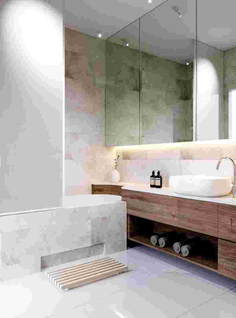 Поскольку в ванной комнате хранятся много мелких вещиц, решающее значение в планировании снова играют различные встроенные ящики, спрятанные от глаз полки и корзинки.
