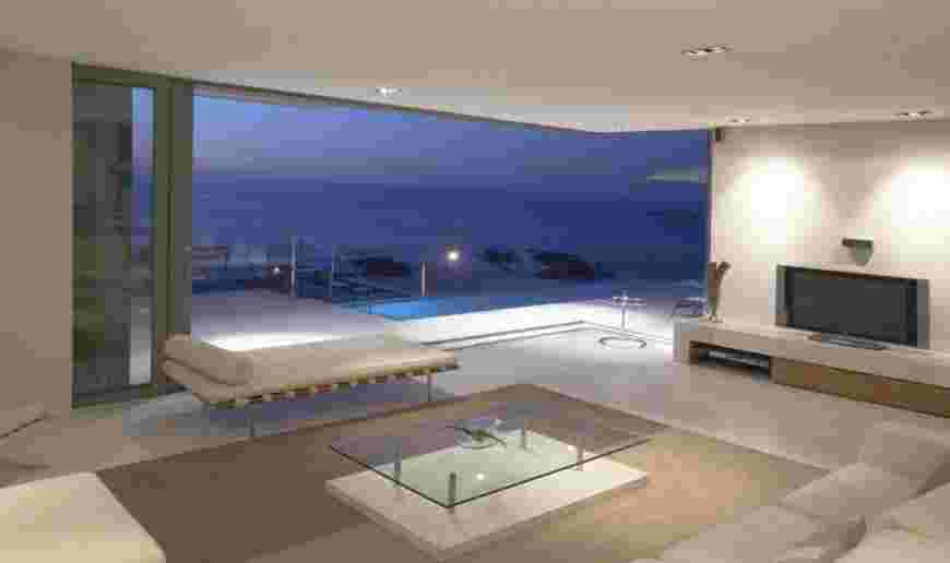 Важная роль в освещении минималистического жилища принадлежит естественному свету. В поддержку общей идеи дизайна о преобладании свободного пространства окна должны быть большими. Несомненно, выигрышный вариант – панорамные окна, огибающие, например, всю гостиную.