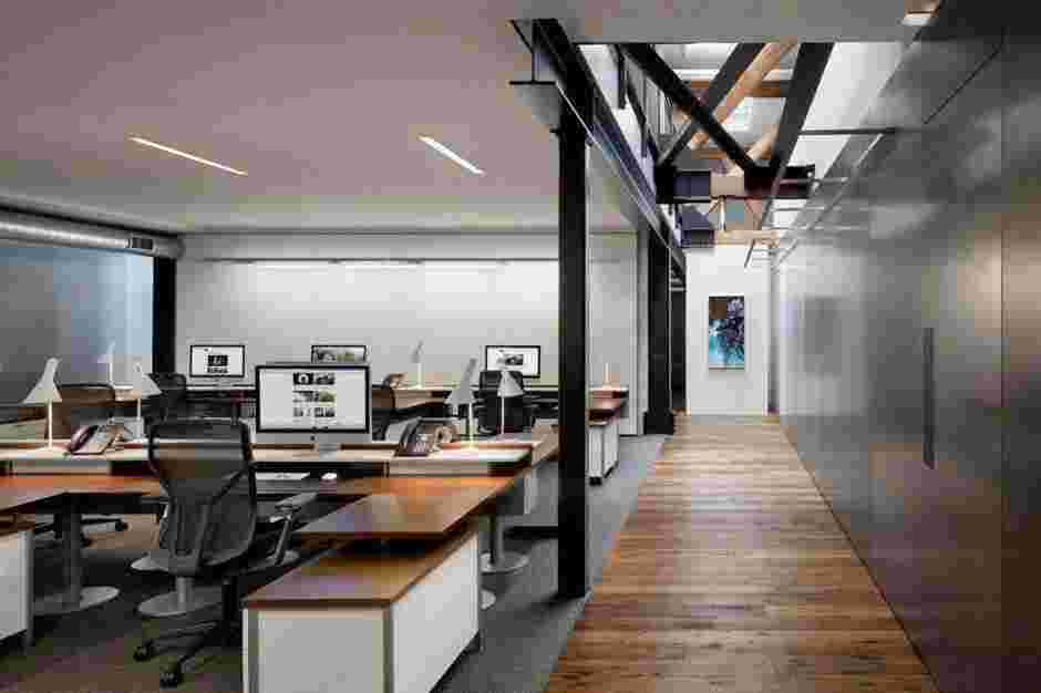 Места обычных работников размещают на общем пространстве, не рассаживая персонал по отдельным кабинетам. Это дает массу преимуществ: во-первых, так экономится площадь, во-вторых, контакты работников оказываются теснее.