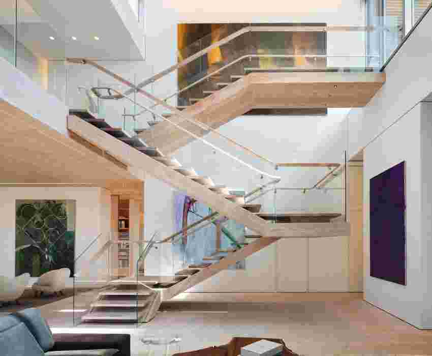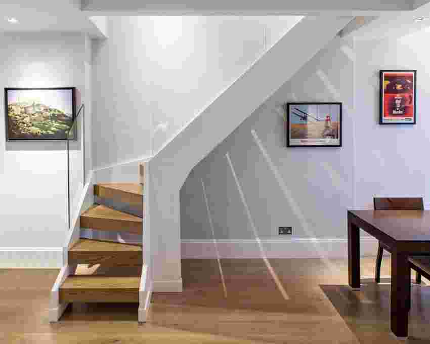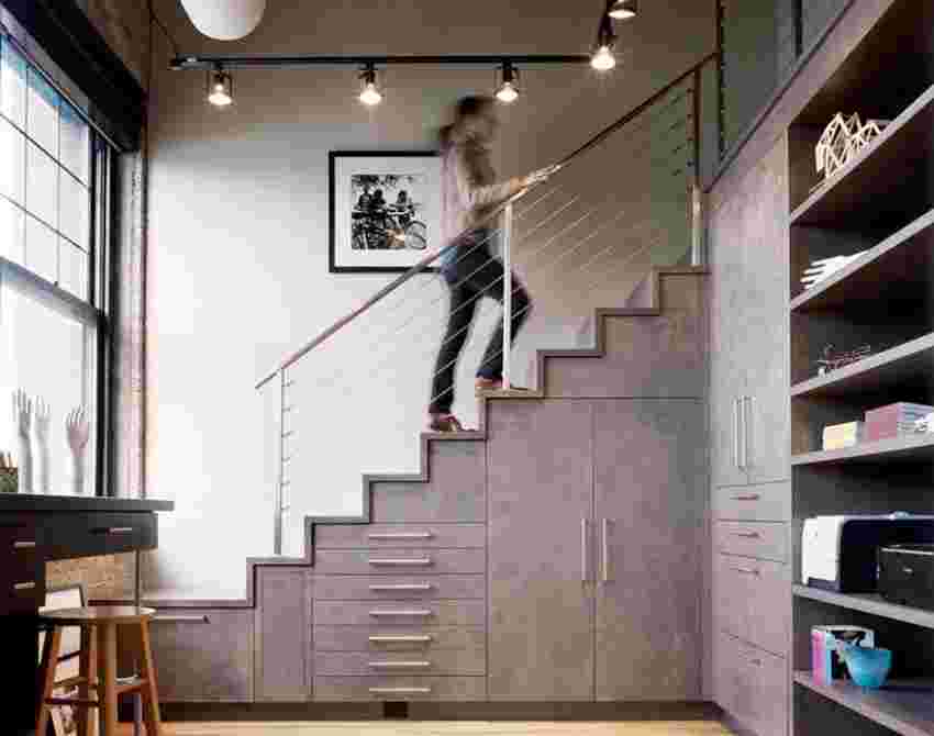 Обустройство лестницы в нише.На заметку! Не следует пренебрегать инженерными требованиями к конструкции лестницы в угоду декоративным элементам. Это может послужить причиной многих неприятностей.