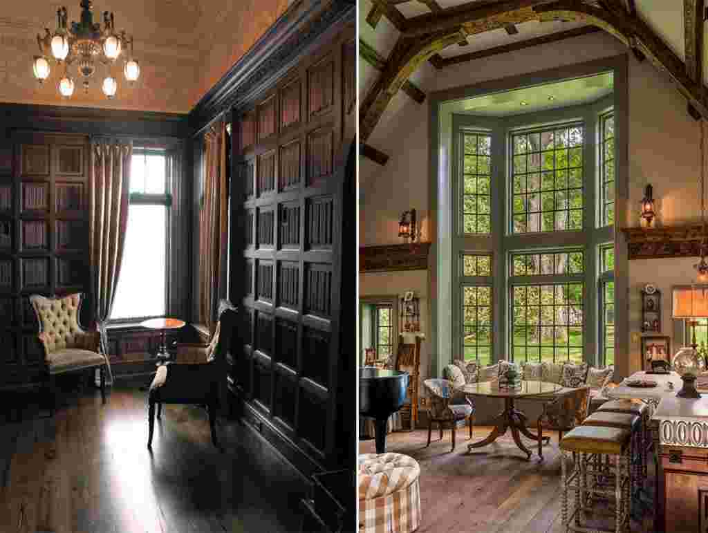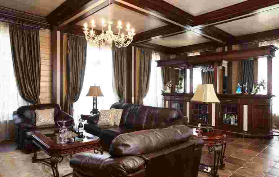 При выборе интерьера обратите внимание на вещи, способные подчеркнуть старину. Можно смело выбирать массивную мебель в темных тонах, но не забывать следить за ее комфортабельностью