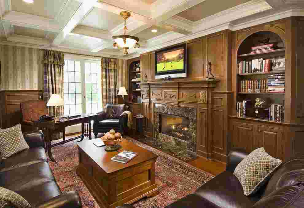 Отлично дополнят атмосферу статуэтки и вазы, главными «фишками» станут библиотека и камин, которым стоит уделить особое внимание