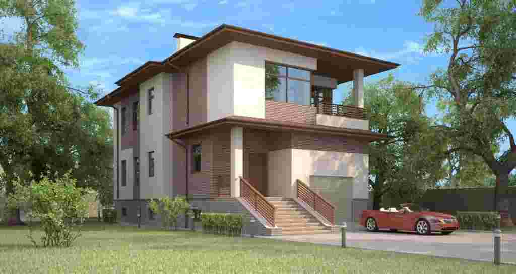 - Практичная планировка. В частных домах всегда должно быть место для гаража, большой террасы или балкона. Часто встречаются в проектах домов в стиле модерн и хай-тек такие элементы, как плоская крыша или необычный фасад.