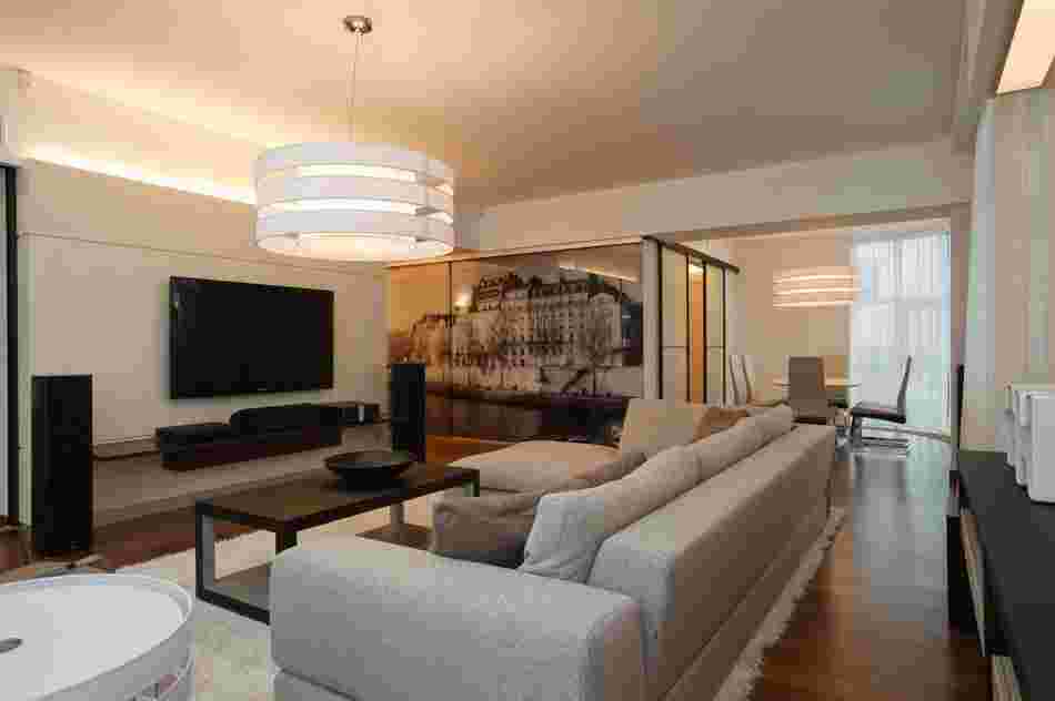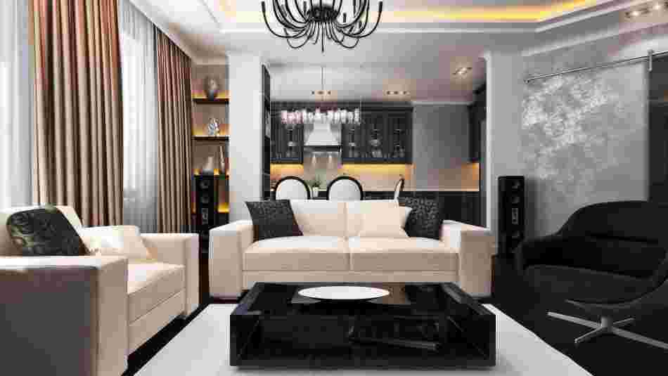 Для обустройства интерьера в стиле модерн требуются большие площади, так как он предполагает открытое пространство, разделяемое не стенами, а плавными переходами высоты или цвета пола, легкими перегородками или зонирование цветом стен и потолка.