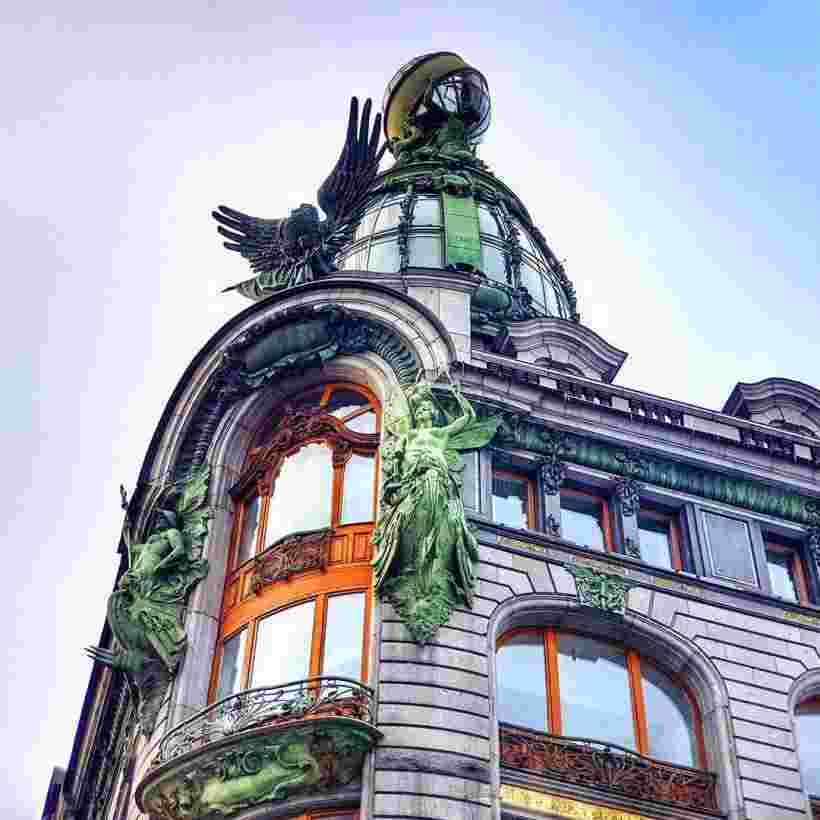 - Свободный выбор форм. Здания в стиле модерн отличаются естественными, природными очертаниями, используются красивые растительные орнаменты. Все части фасада, начиная от стены и заканчивая террасой, характеризуются плавными силуэтами.