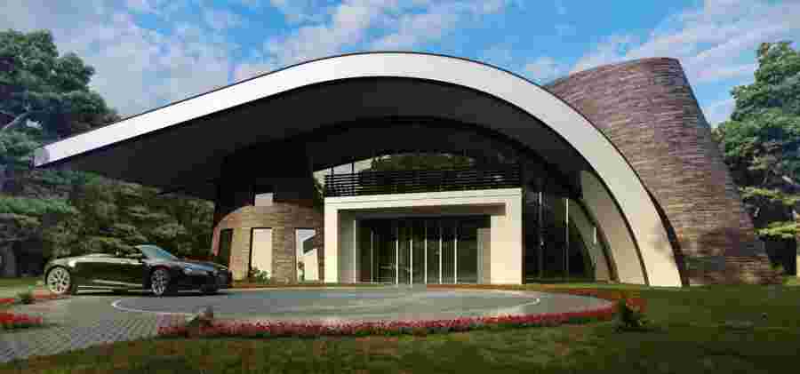 Архитекторы, работая над проектами, отдают предпочтение мягким, текучим формам. В облике домов отсутствуют резкие переходы, плавные линии здания подчеркивают подходящим ландшафтным дизайном придомовой территории.