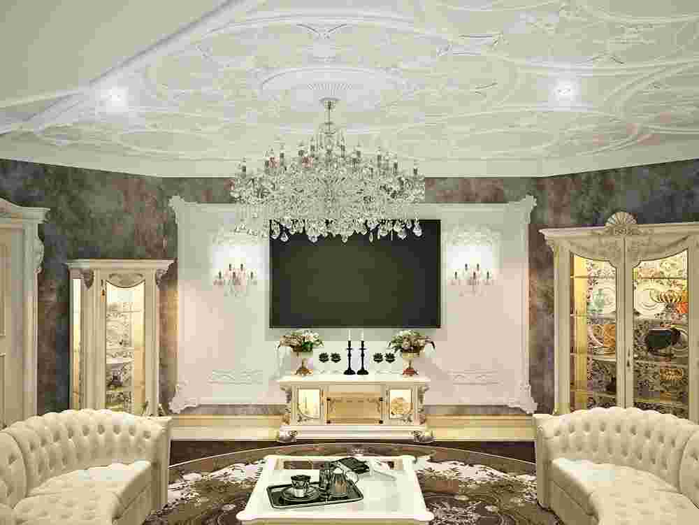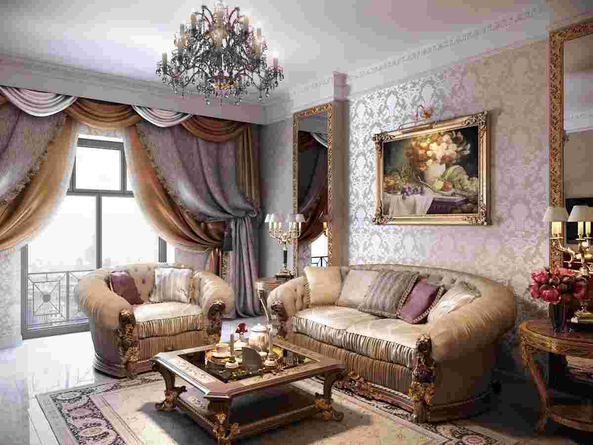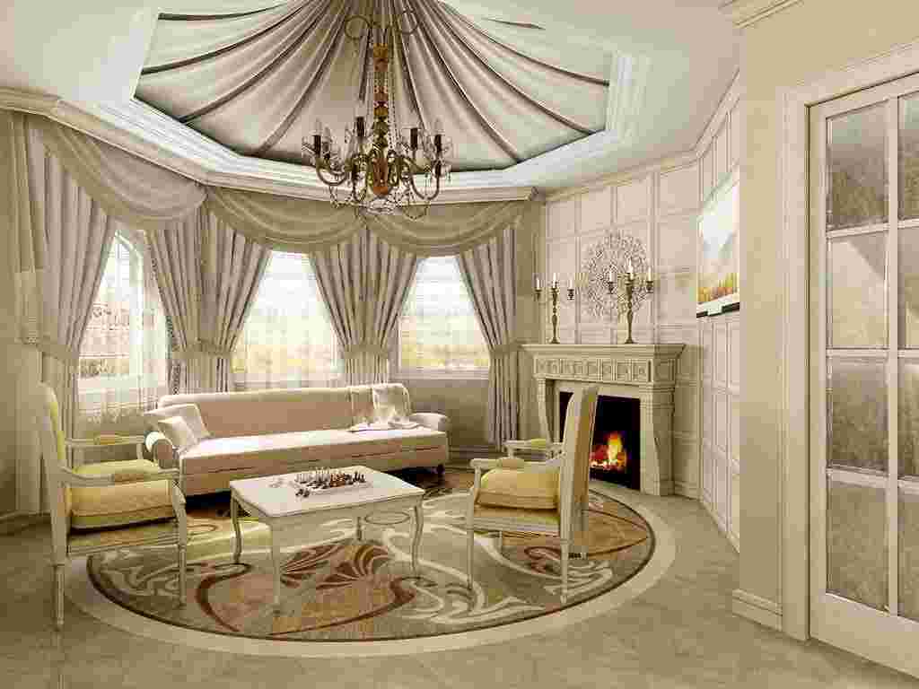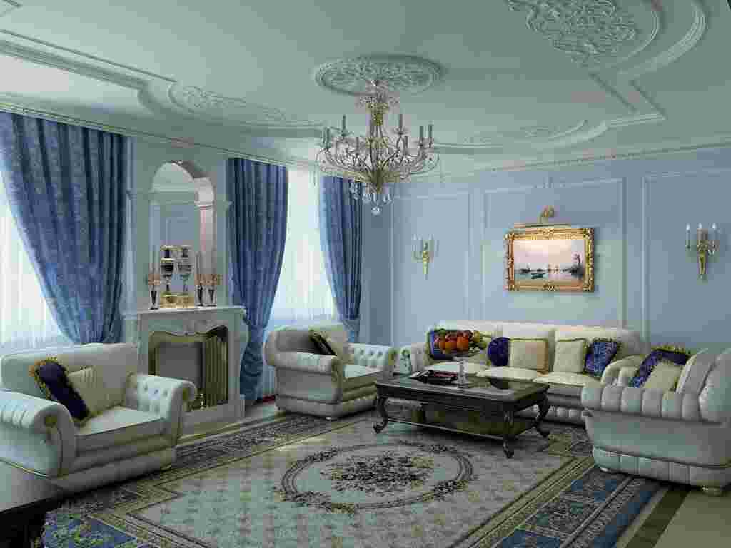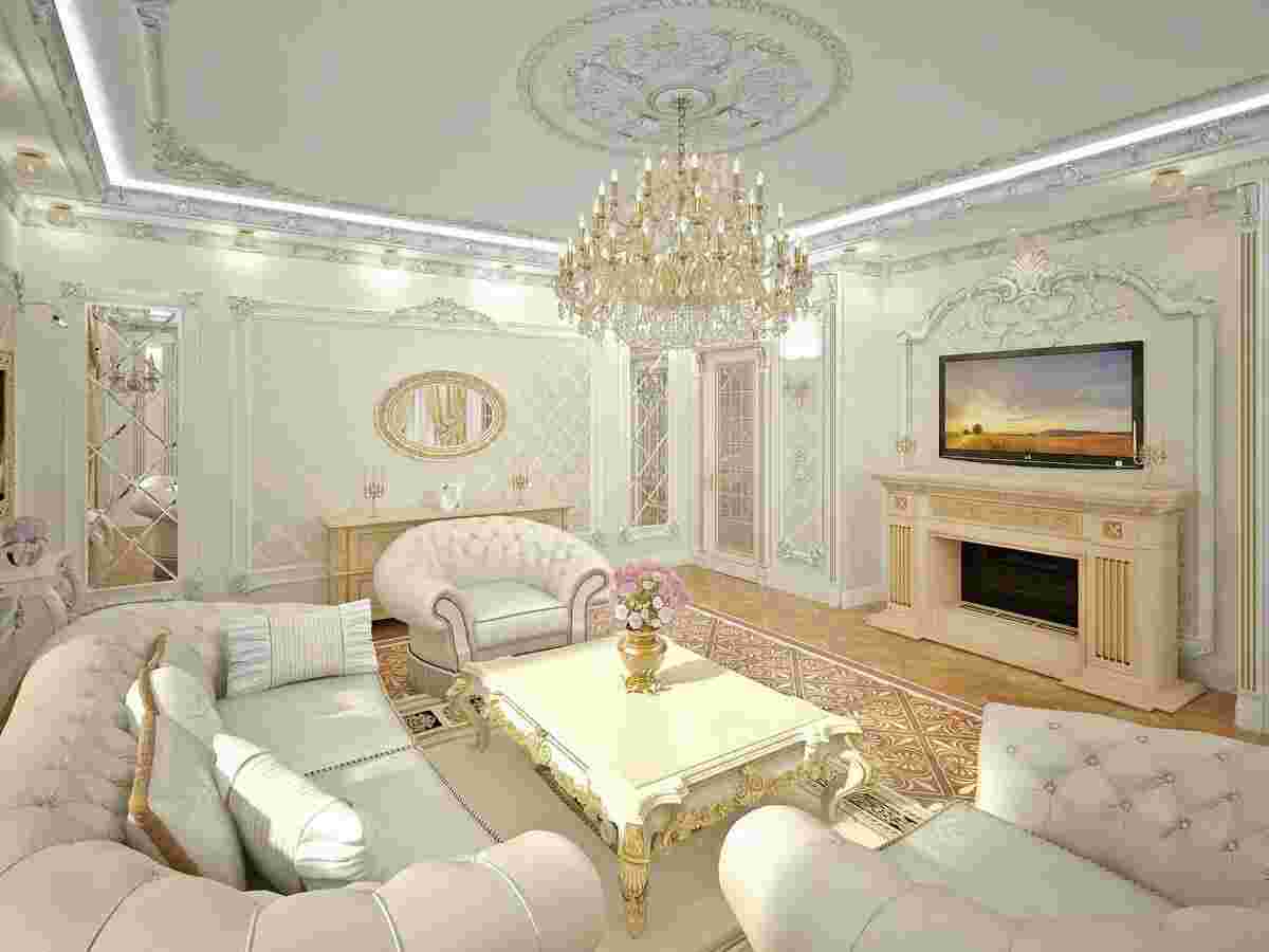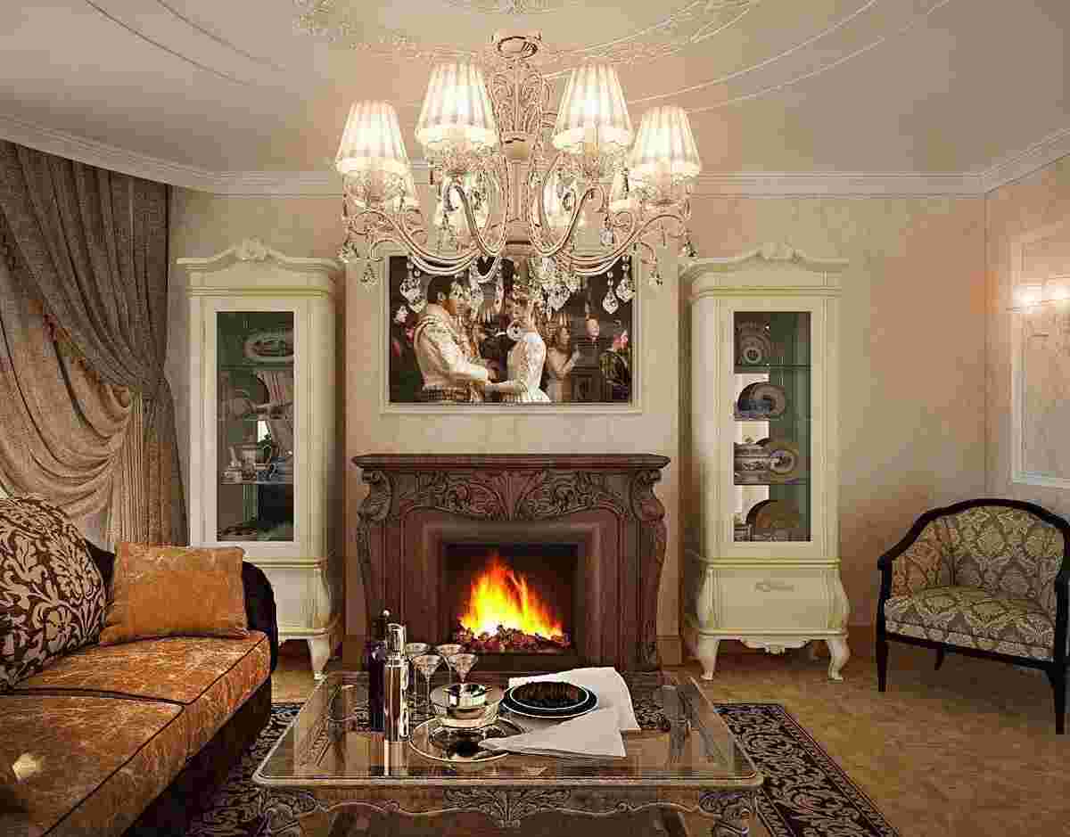 В оформлении комнаты используют элементы классицизма, барокко, рококо, ампира и следуют традиционным канонам. В проектах гостиных присутствуют и современные элементы. Но они всегда упорядочены и логично вписаны.