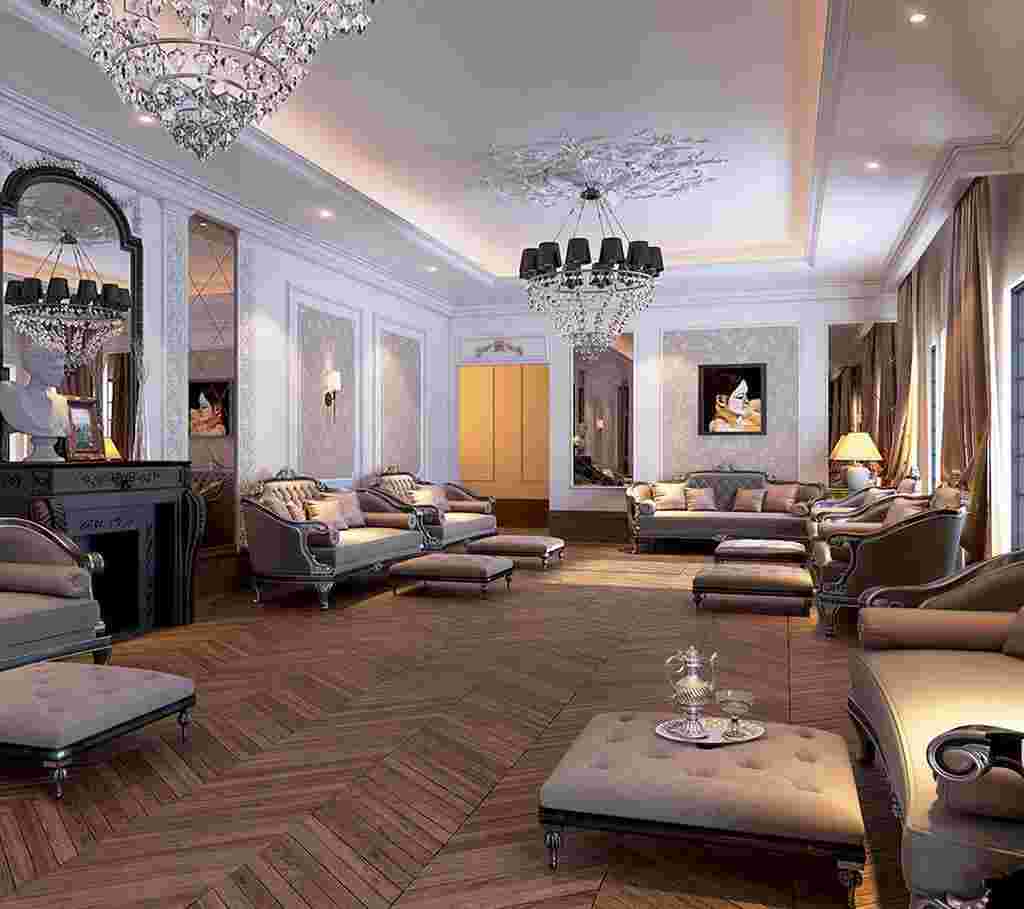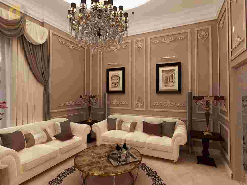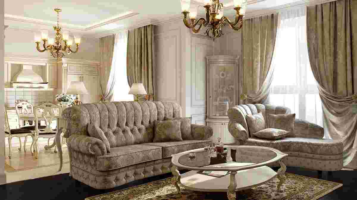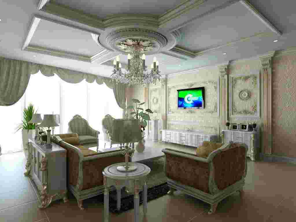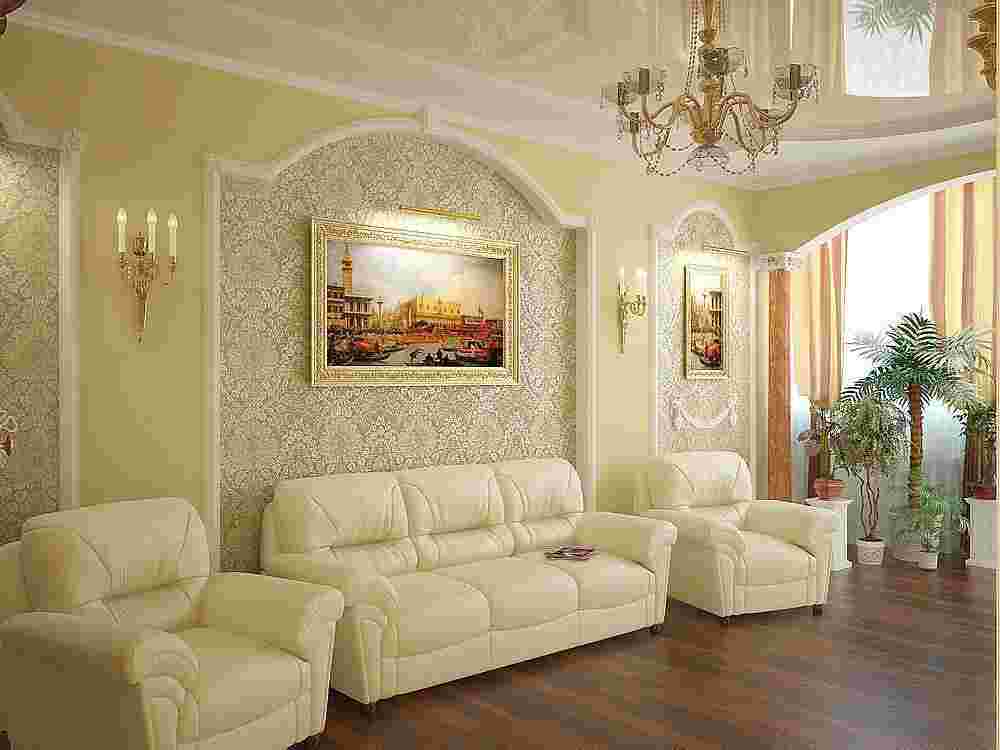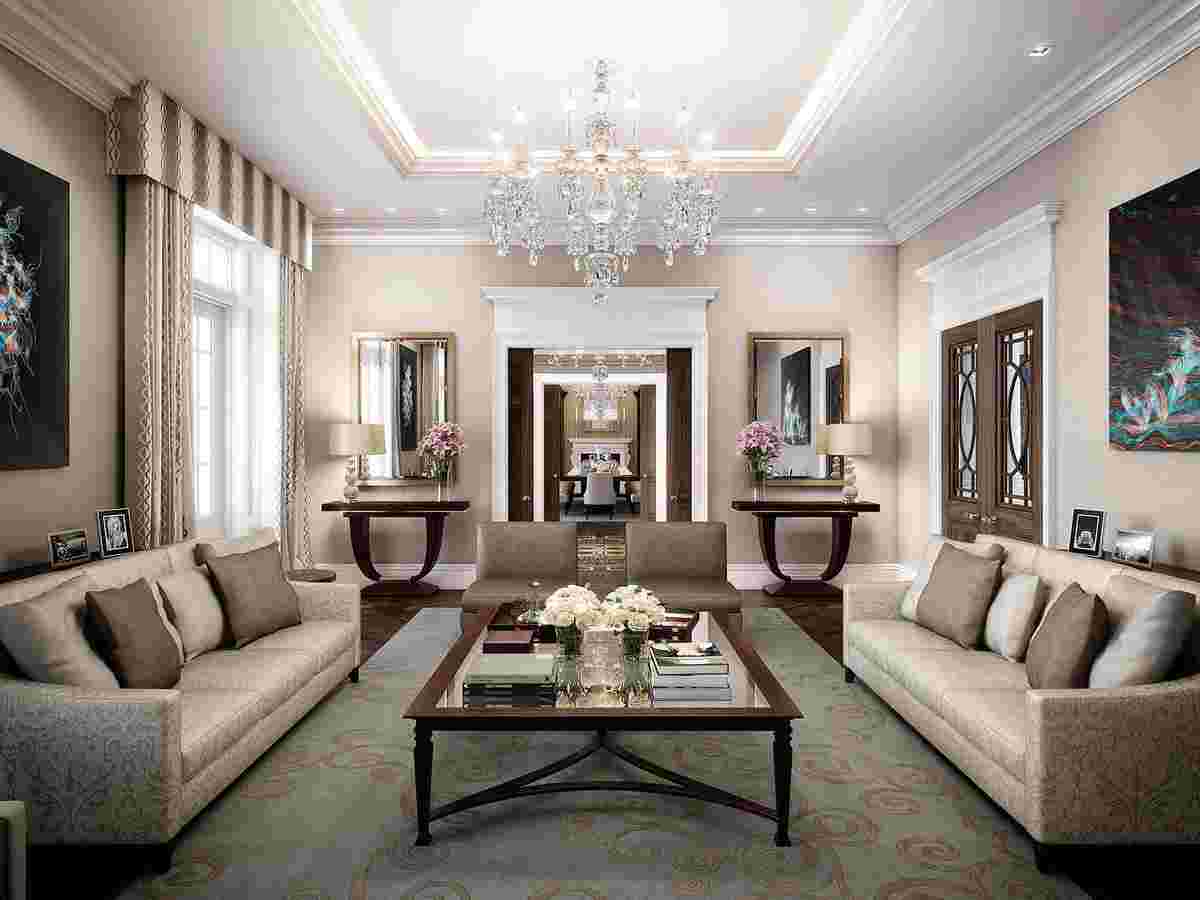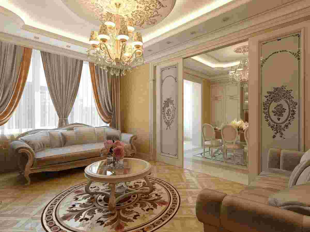 В оформлении комнаты используют элементы классицизма, барокко, рококо, ампира и следуют традиционным канонам. В проектах гостиных присутствуют и современные элементы. Но они всегда упорядочены и логично вписаны.