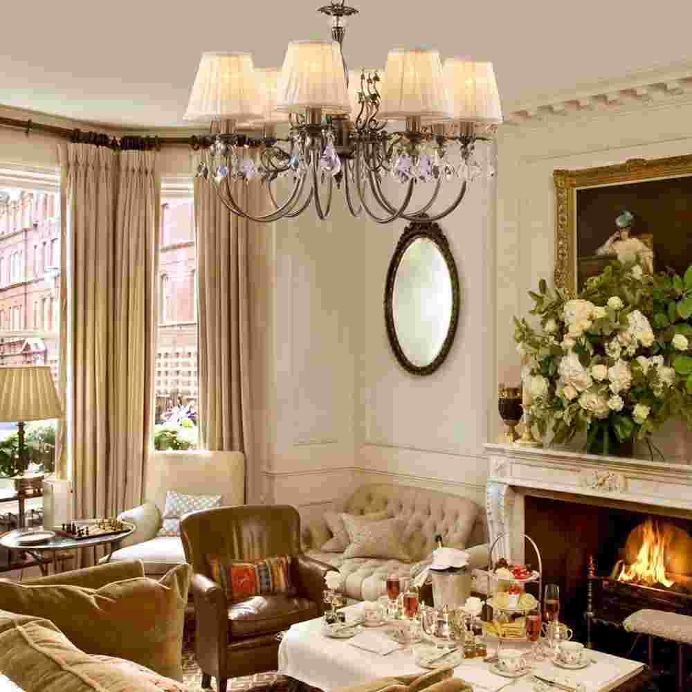 - дополнительные источники света — бра и множество ламп на столиках, каминах заменили канделябры и подсвечники, которые помогали люстрам освещать жилища в начале эры электрификации.