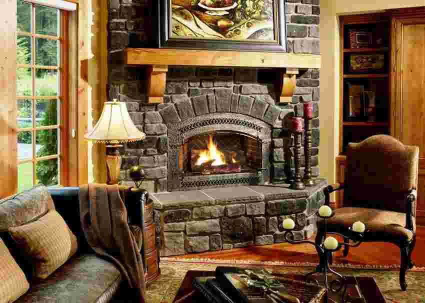- в отделке – кирпич или его имитация, плитка, бетон, дерево грубой обработки;