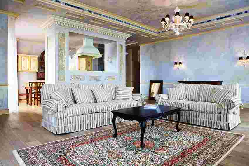 Обычно классический стиль выбирается для оформления просторных гостиных: в малогабаритной хрущевке не поместится высокая хрустальная люстра или роскошный диван. Желательно, чтобы в комнате был высокий потолок и большое окно. Тогда картины в позолоченных рамках и ковер ручной работы в центре зала будут смотреться особенно шикарно. Но иногда дизайнеры допускают классический интерьер и в обычной квартире, только советуют подходить к его оформлению со всей ответственностью.
