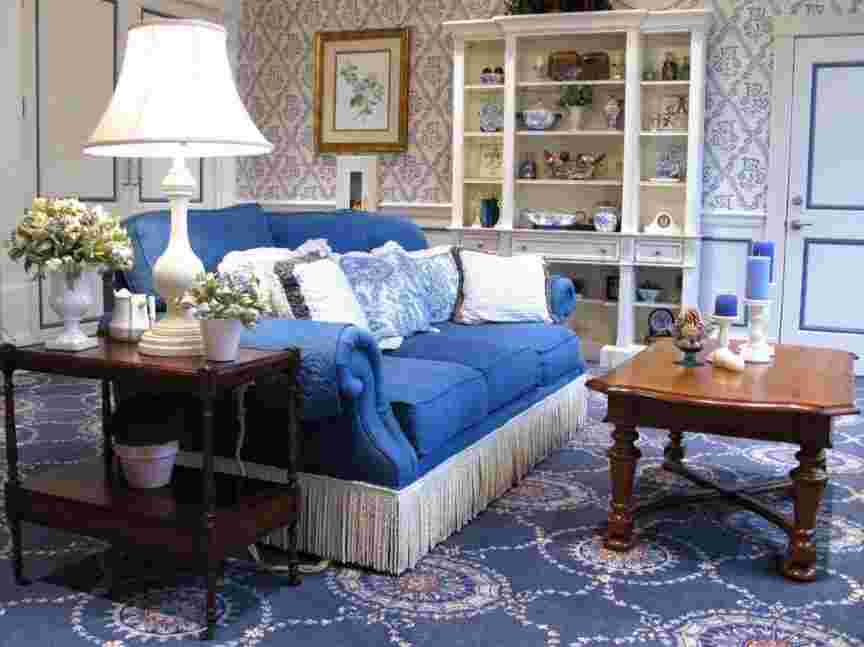 - посередине комнаты часто размещают журнальный столик «под старину», по обе стороны от него – кресла и диван;