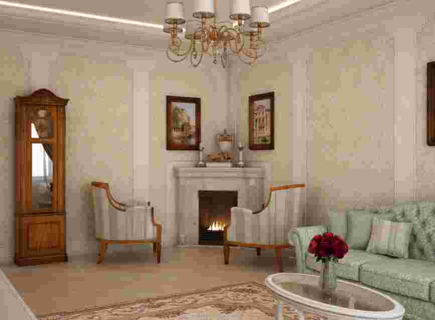 Камин можно с полным правом назвать одним из главных элементов в дизайне гостиной в классическом стиле. Он не просто создает уют, а украшает интерьер и повышает его статус. А чтобы камин органично вписался в пространство, для него нужно найти подходящее место.