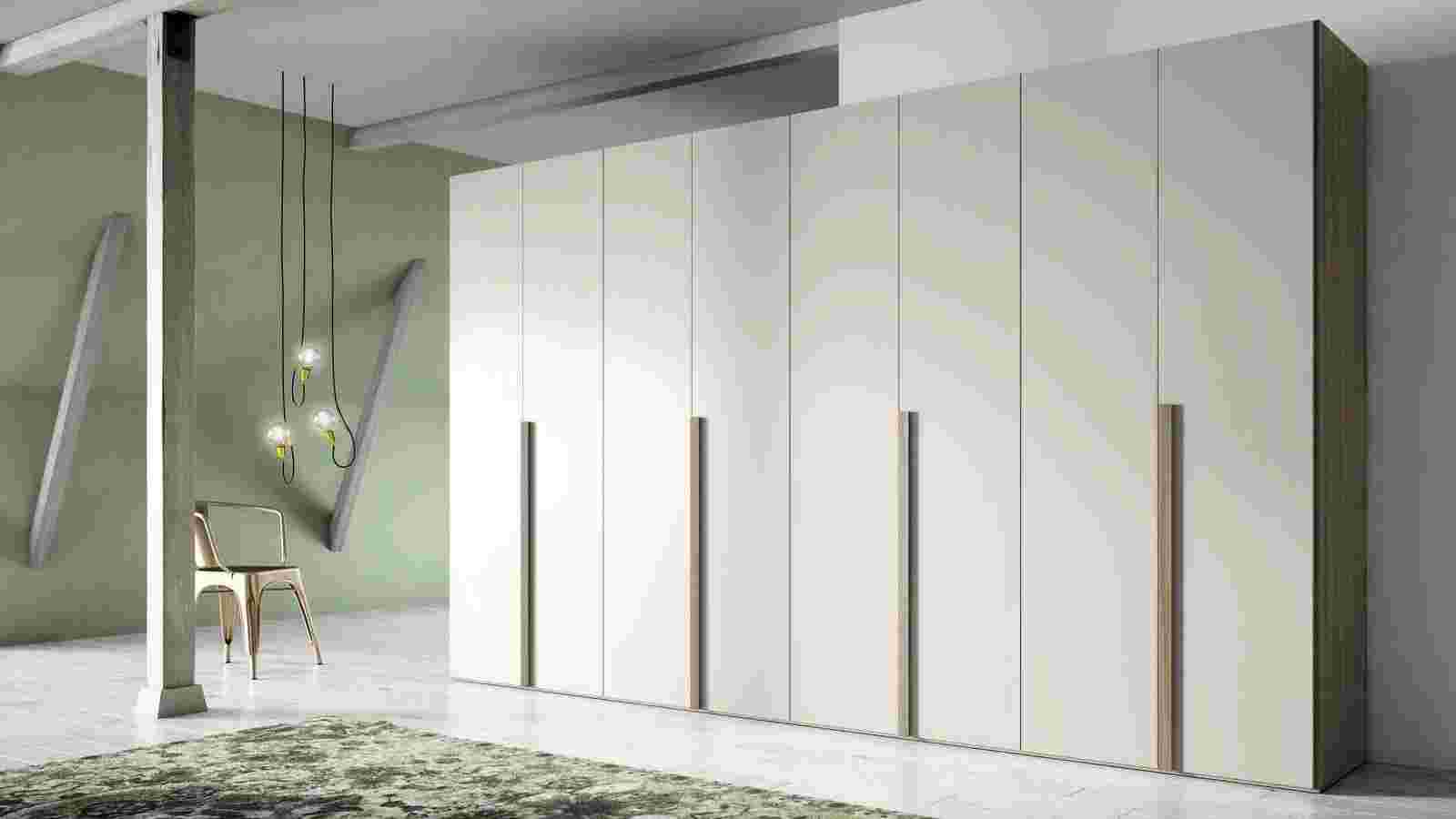 Для шкафов в стиле минимализм характерны симметричность геометрии, правильность линий, монохромная расцветка или сочетание двух оттенков. Популярная палитра цветов включает белый и близкие к нему, графитовые, черный. Этим требованиям соответствуют шкафы-купе, благодаря которым на виду остается минимум вещей. Нередко для оформления раздвижной системы используют лакобель или лакомат на стекле, характерные для самых современных тенденций.
