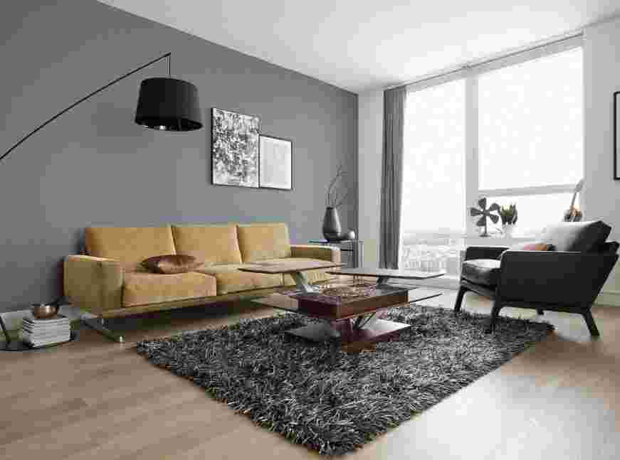 Обычно дизайн гостиной, выполненной в стиле минимализм, подразумевает использование нескольких оттенков одного цвета. Для контраста используются древесные цвета, красный кирпич и металл. Для отделки поверхностей используются естественные цвета: