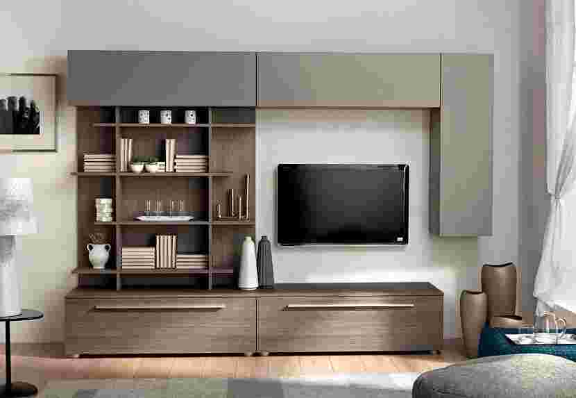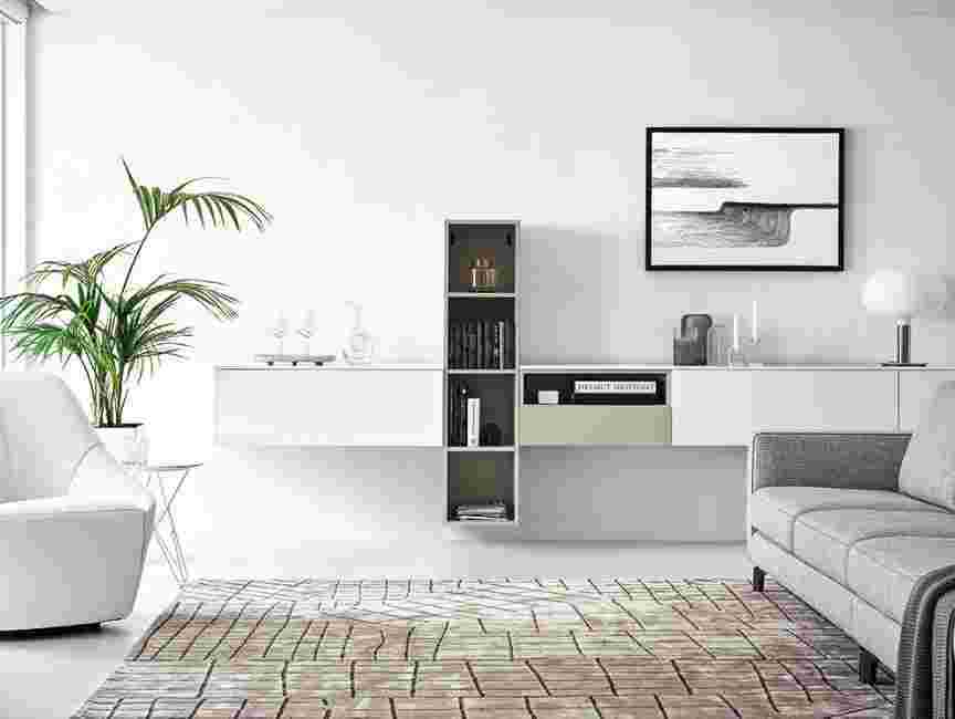 Стенка в гостиной в современном стиле минимализм тоже будет выглядеть уместно
