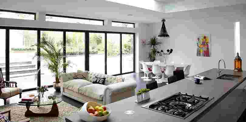 Захватывающий пейзаж снаружи становится холстом для открытой гостиной (от Gary Gladwish Architecture).