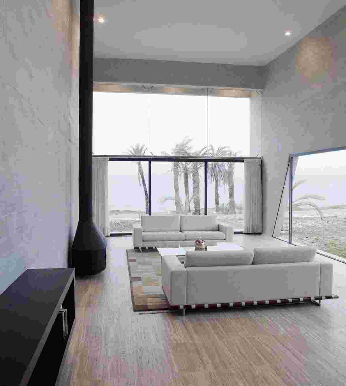 Главным элементом отделки внутреннего фасада (со стороны двора или террасы) часто выступает стекло, которое иногда может занимать значительную площадь. Некоторые важные элементы минимализма пришли из азиатской культуры. К ним относятся столь привычные террасы, встроенные шкафы, освобождающие пространство, практичные двери-слайдеры.