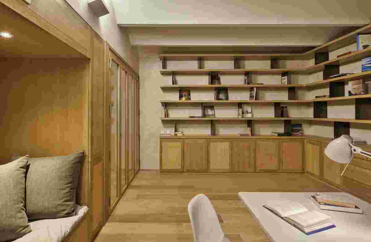 Ручки, замки не должны бросаться в глаза и слишком выделяться. Кресла и диваны, как правило, низкие, а роль шкафов часто выполняют стеллажи.