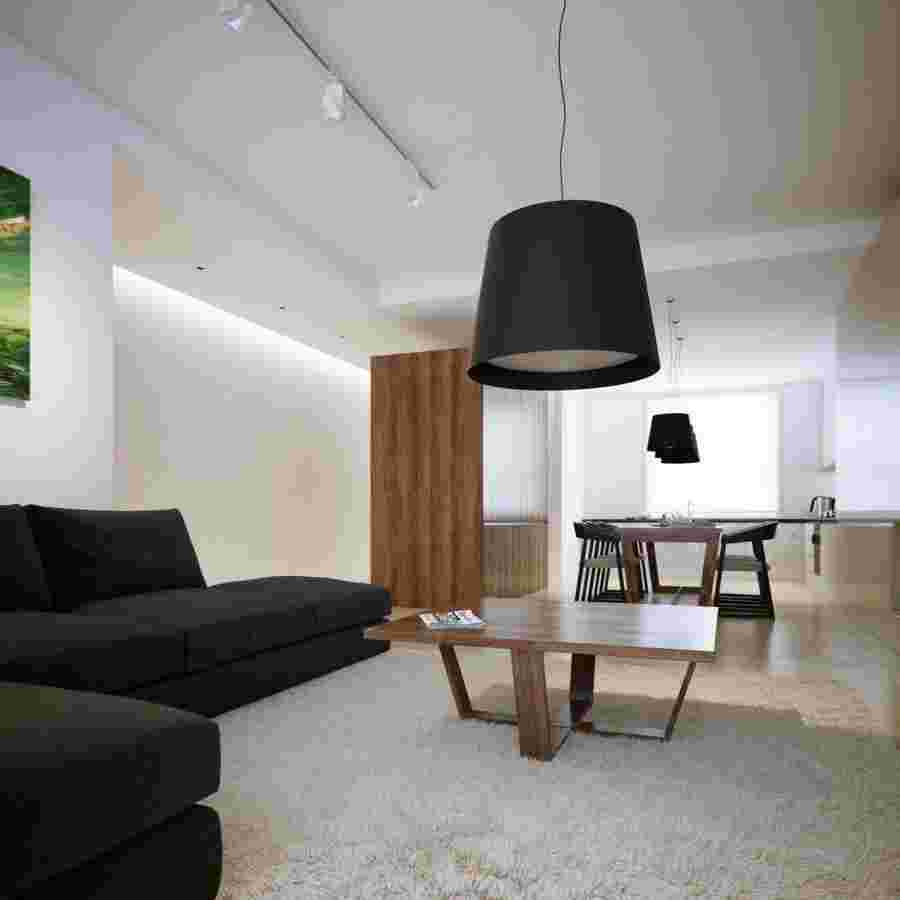Гостиная в стиле минимализма в современной холостяцкой «берлоге» (от Chris Snook).