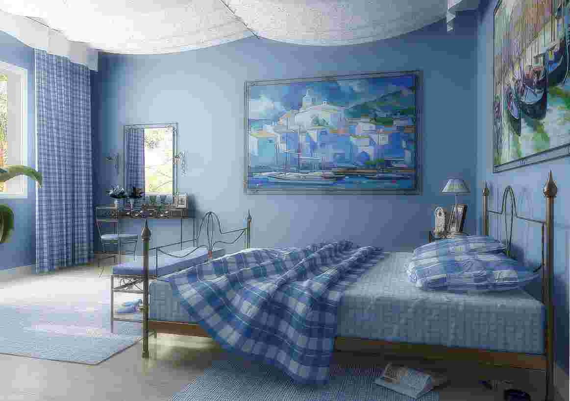 Греческий стиль формировался под влиянием климатических и природных особенностей страны. Греция омывается тремя морями — Средиземноморским, Эгейским, Ионическим, и это нашло отражение в интерьере: для оформления помещения используются все оттенки синего цвета, стены могут украшаться фактурной штукатуркой, напоминающей неспокойное, бурлящее море. В комнате обязательно должны присутствовать элементы декора, которые бы отображали национальный колорит. Это могут быть амфоры, статуэтки древнегреческих богов, текстиль с характерным орнаментом меандр.