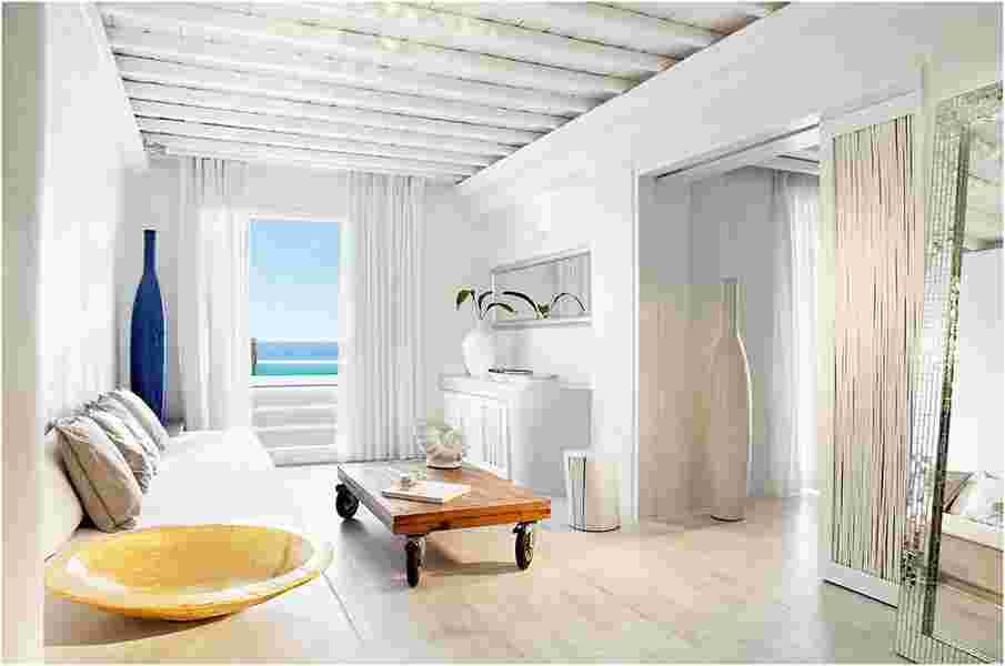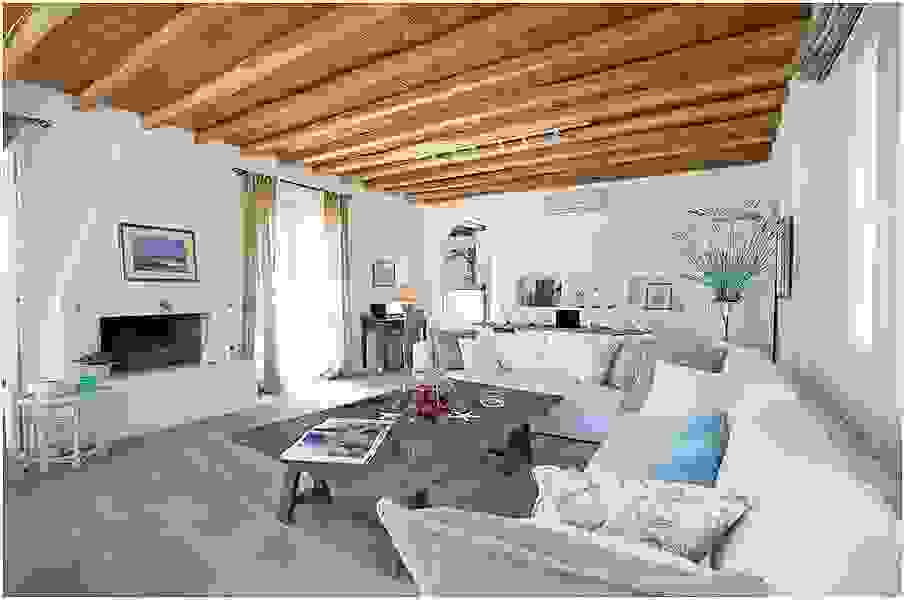 Деревянные аксессуары и текстиль в интерьере греческой гостиной
